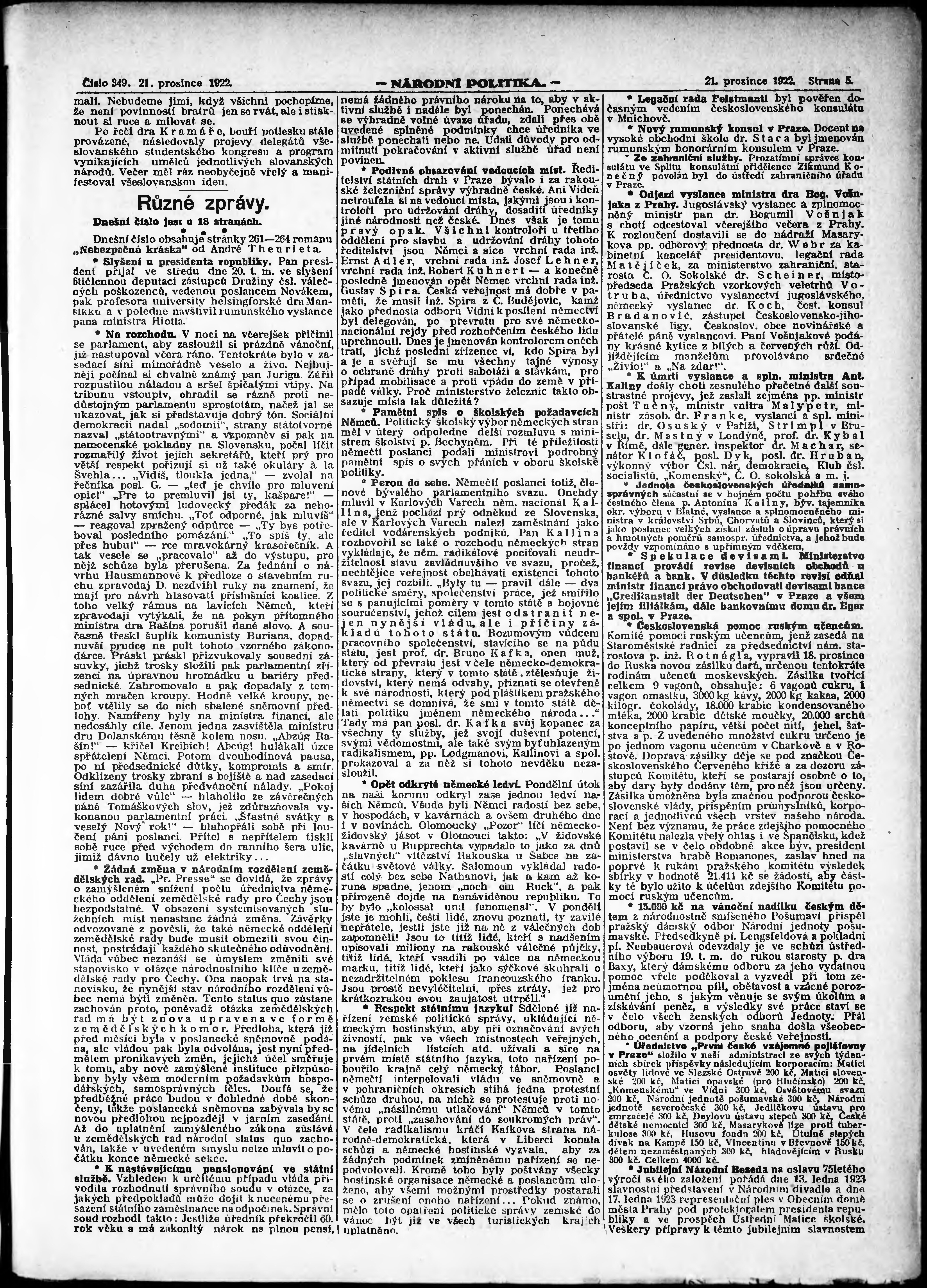 * Datum vydání výtisku: 21.12.1922 Číslo výtisku: 349 Poznámky k výtisku: ranní vydání; vydání pro Prahu;