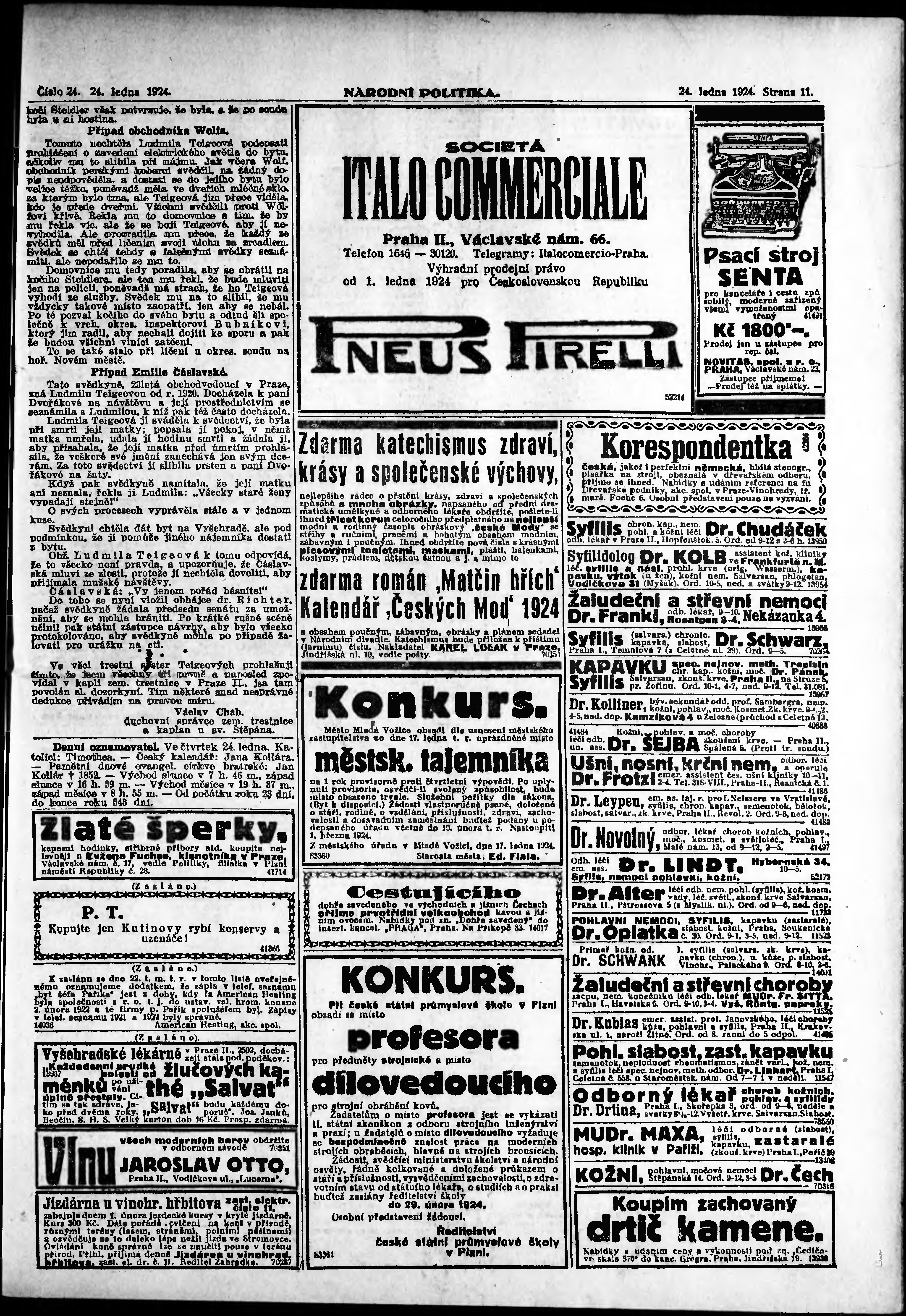 * Datum vydání výtisku: 24.1.1924 Číslo výtisku: 24 Poznámky k výtisku: ranní vydání; vydání pro Prahu;
