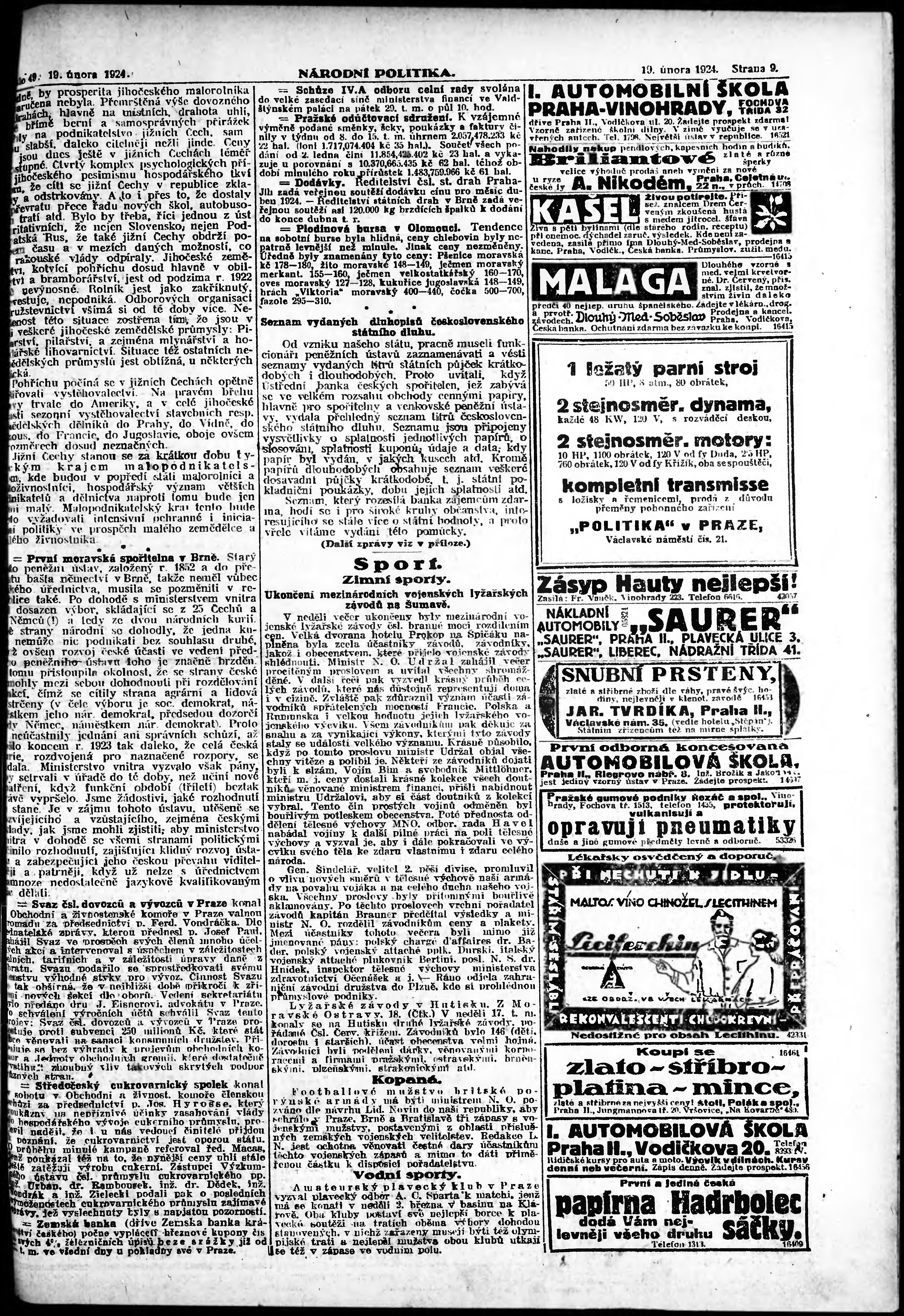 * Datum vydání výtisku: 19.2.1924 Číslo výtisku: 49 Poznámky k výtisku: ranní vydání; vydání pro Prahu;