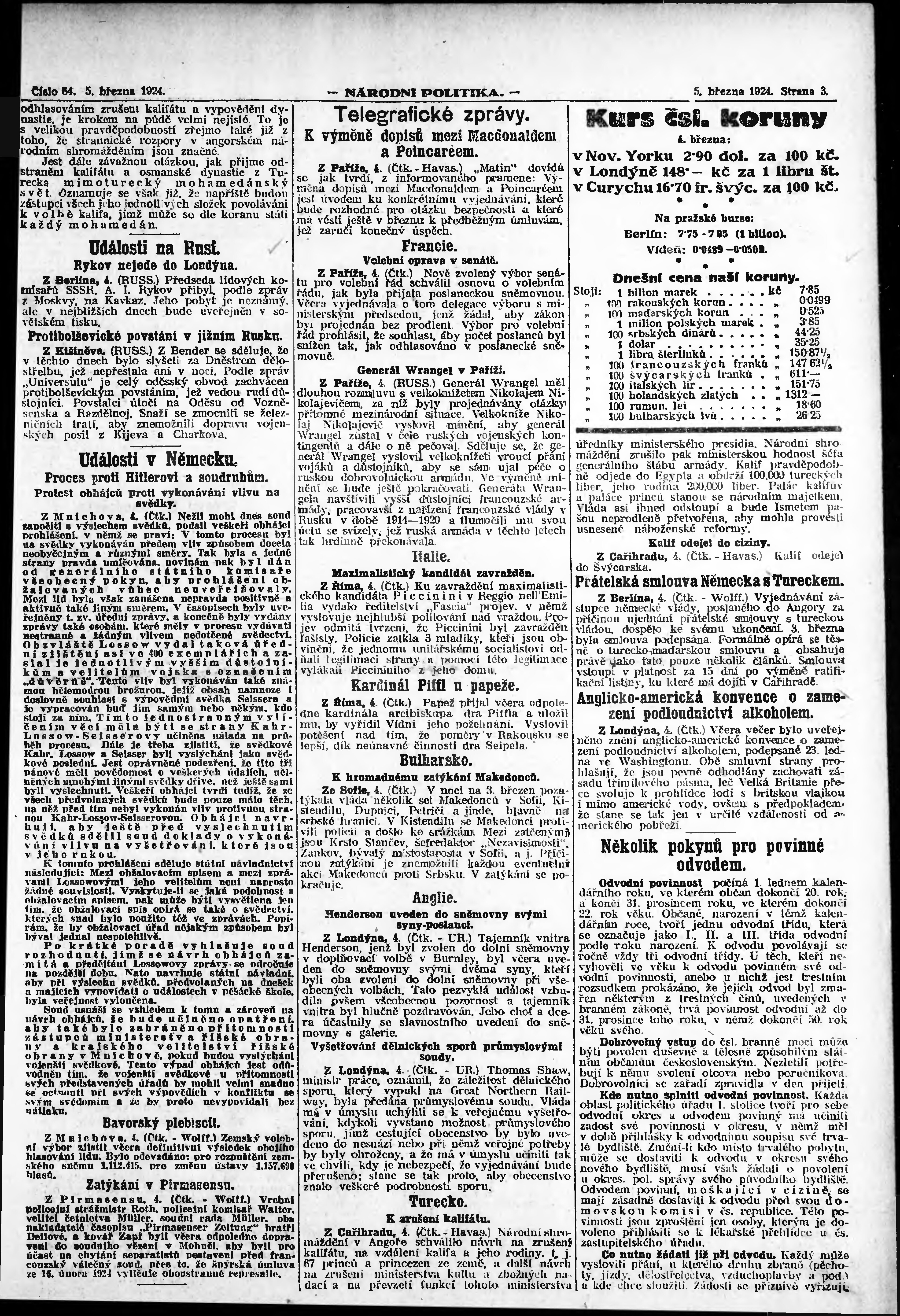 * Datum vydání výtisku: 5.3.1924 Číslo výtisku: 64 Poznámky k výtisku: ranní vydání; vydání pro Prahu;
