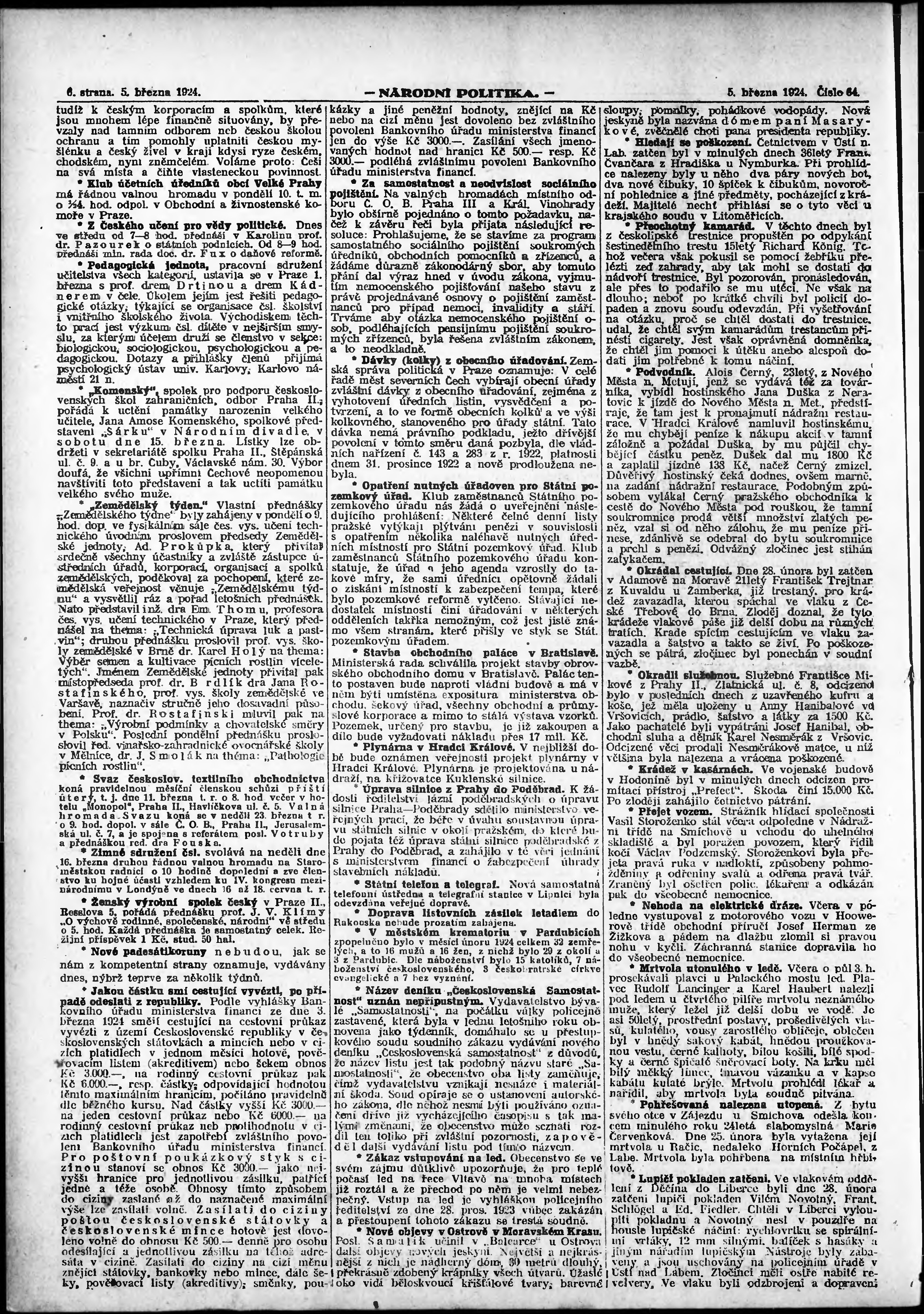 ranní vydání; vydání pro Prahu;