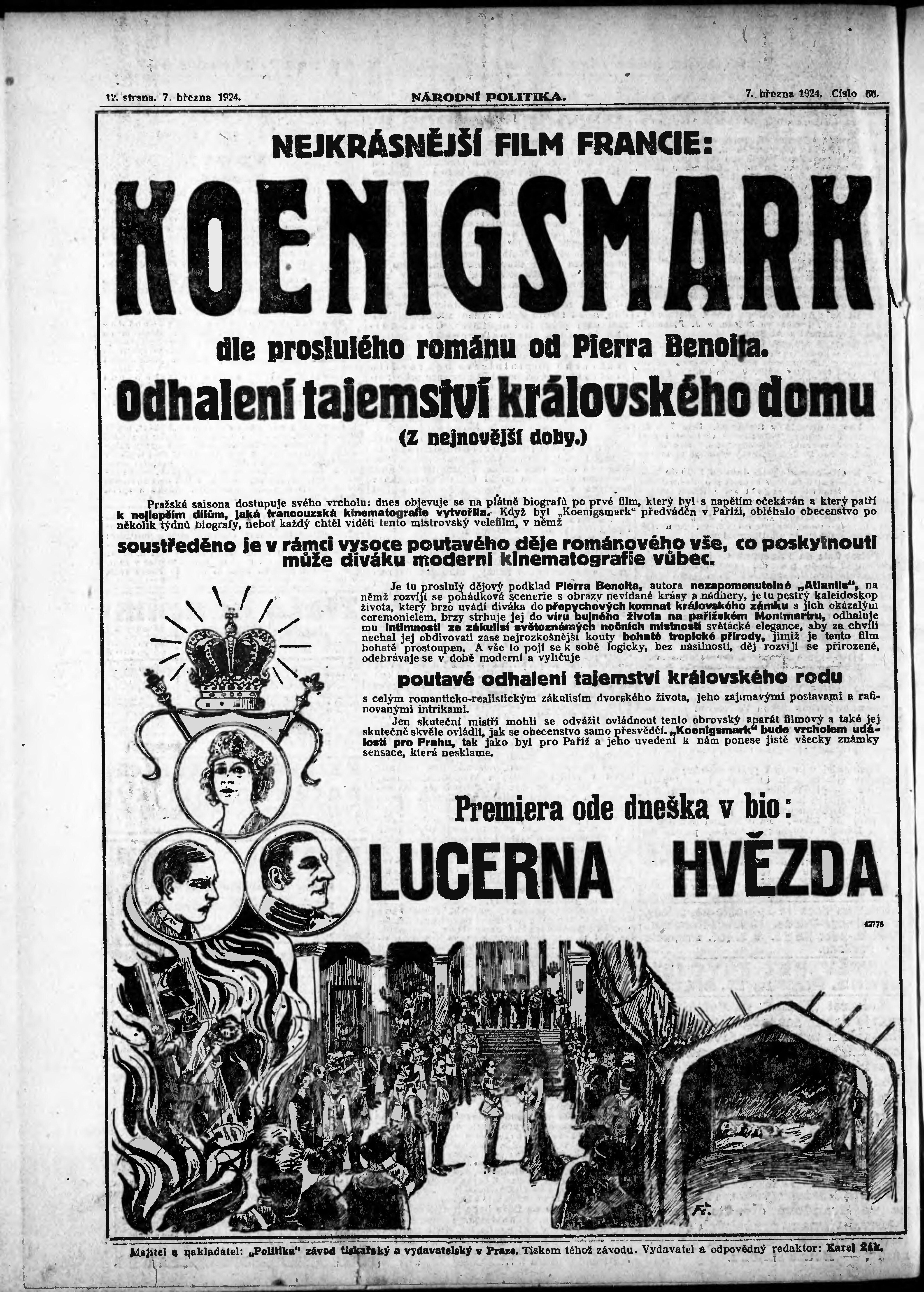 * Datum vydání výtisku: 7.3.1924 Číslo výtisku: 66 Poznámky k výtisku: ranní vydání; vydání pro Prahu;