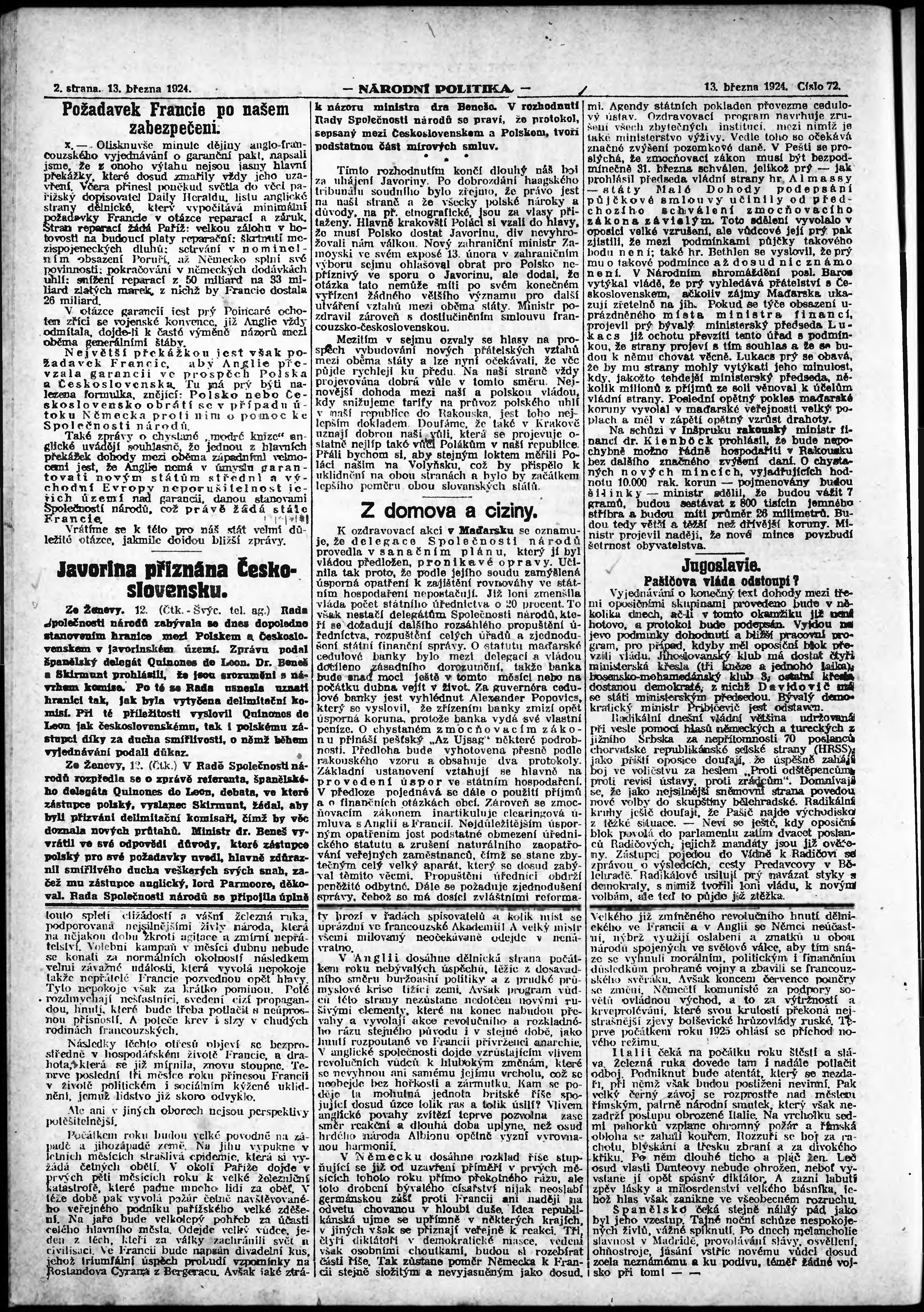 * Datum vydání výtisku: 13.3.1924 Číslo výtisku: 72 Poznámky k výtisku: ranní vydání; vydání pro Prahu;