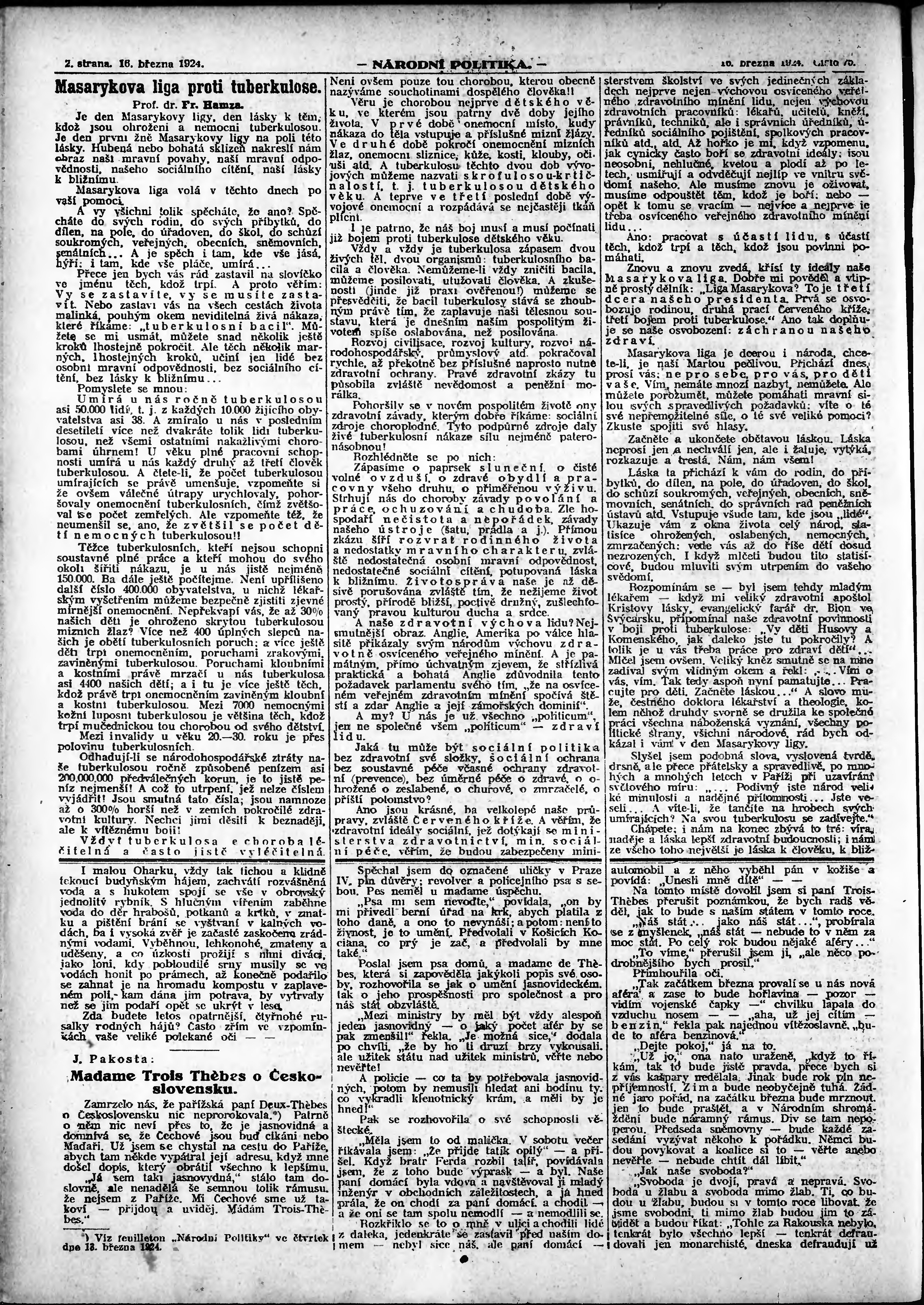 * Datum vydání výtisku: 16.3.1924 Číslo výtisku: 75 Poznámky k výtisku: ranní vydání;