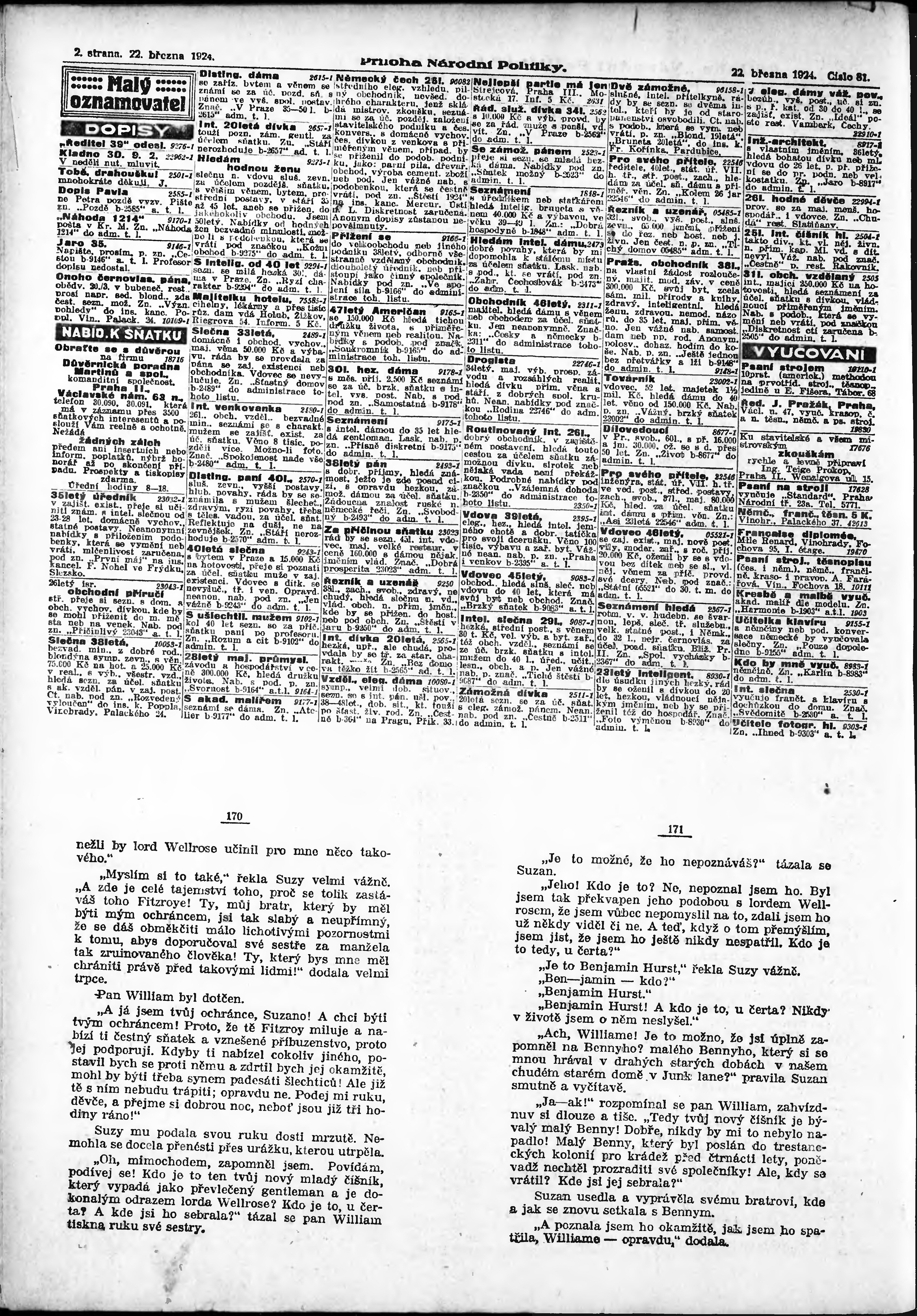* Datum vydání výtisku: 22.3.1924 Číslo výtisku: 81 Typ výtisku: příloha