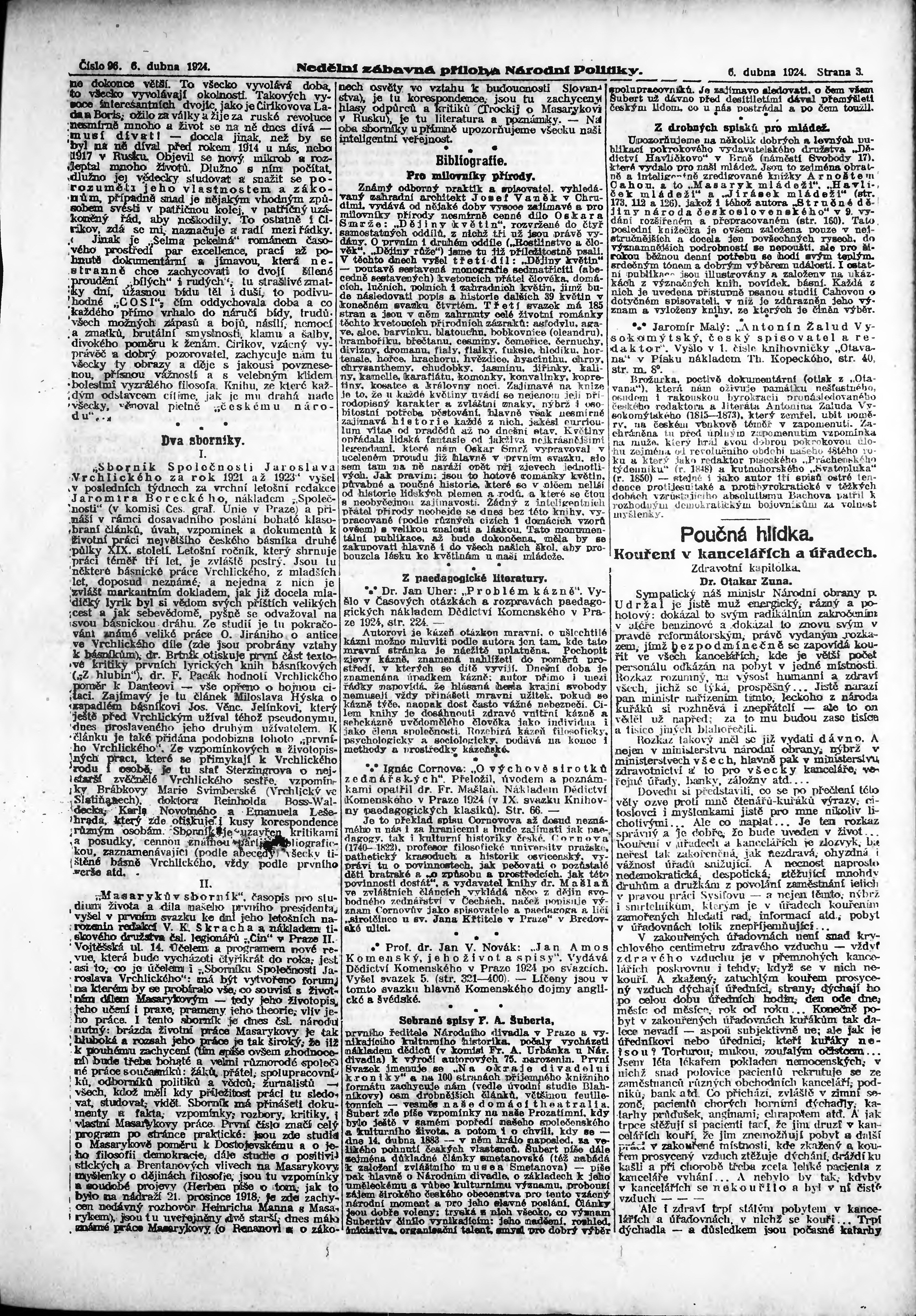 * Datum vydání výtisku: 6.4.1924 Číslo výtisku: 96 Typ výtisku: příloha