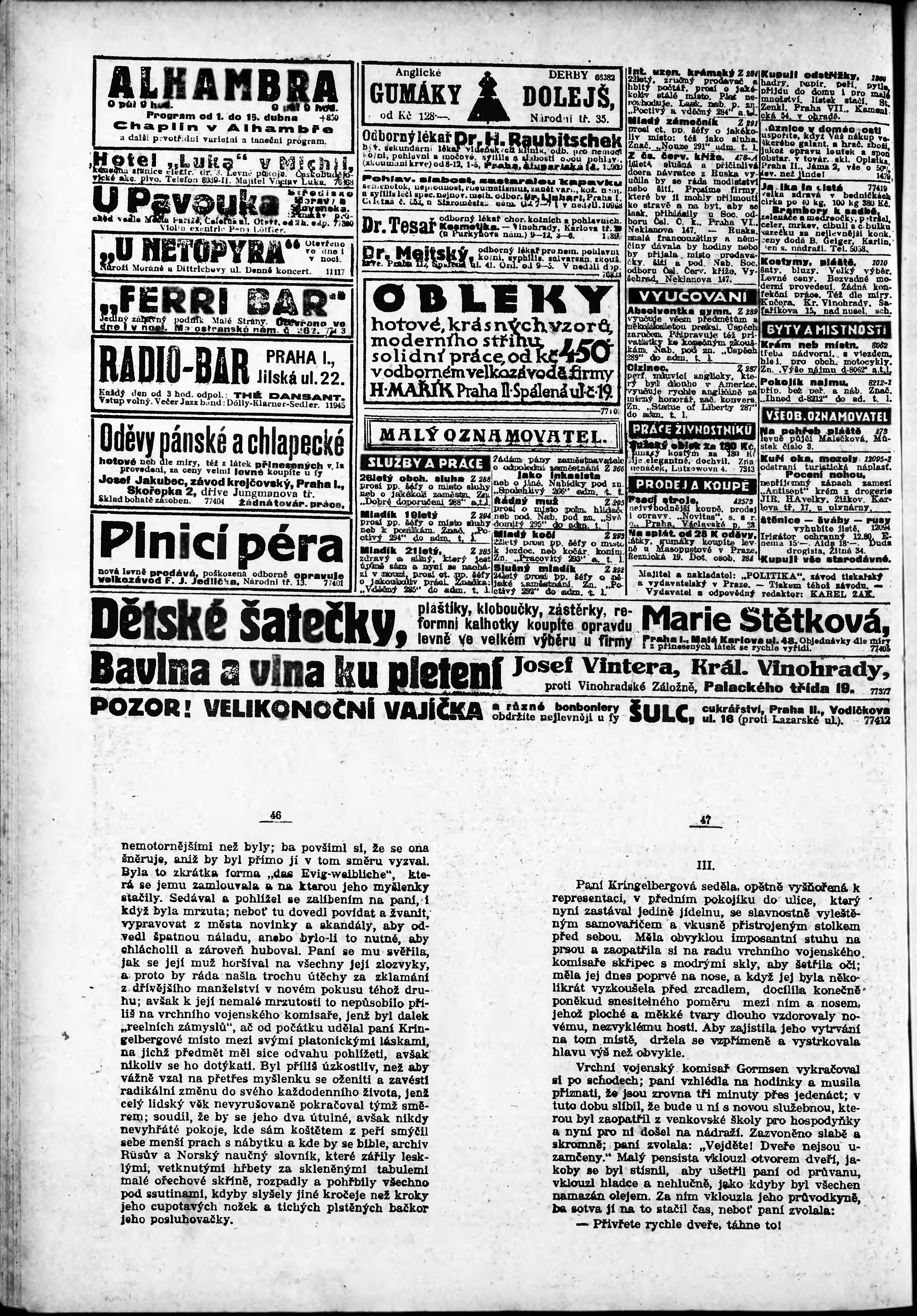 * Datum vydání výtisku: 11.4.1924 Číslo výtisku: 101 Poznámky k výtisku: odpolední vydání;