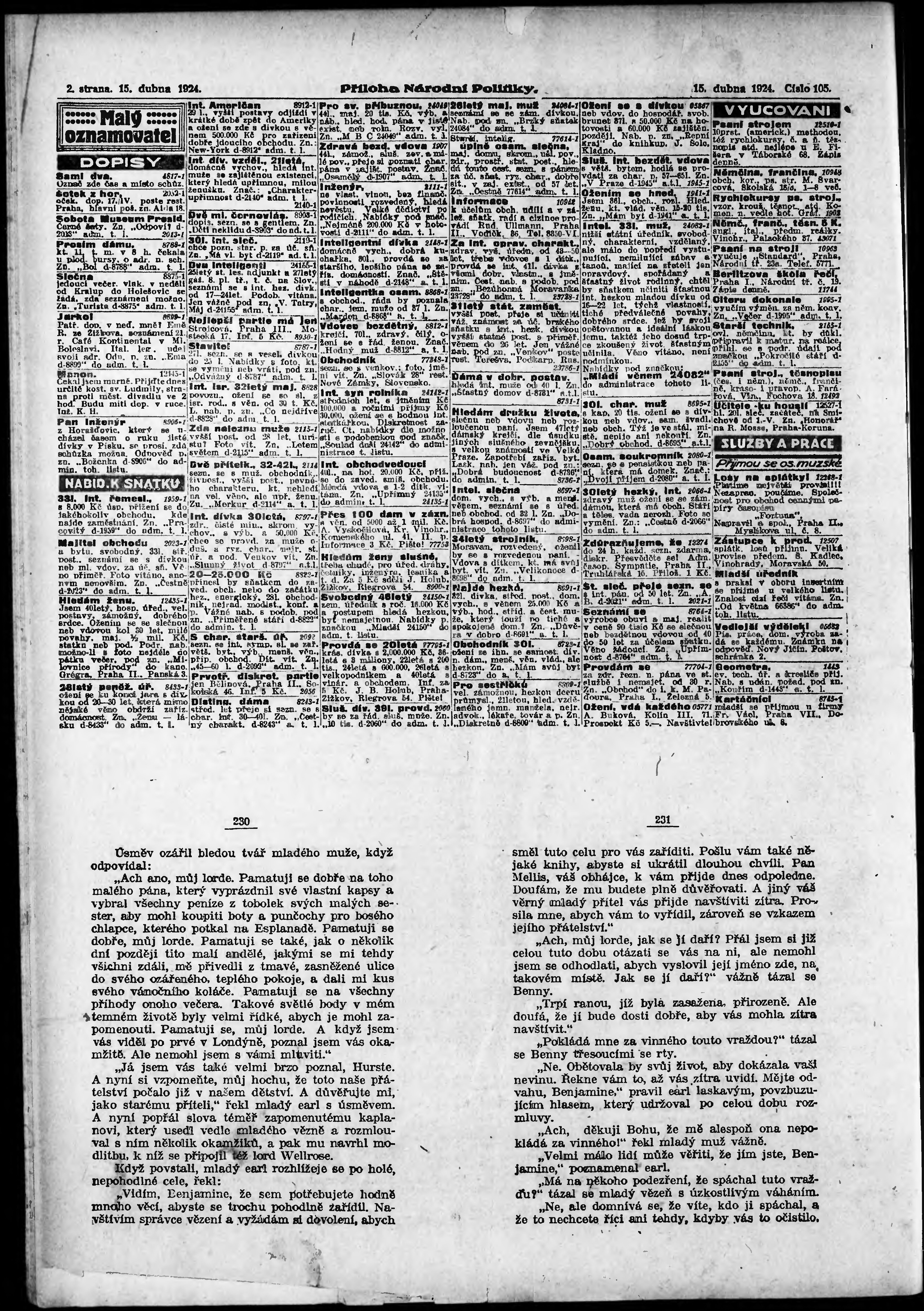 * Datum vydání výtisku: 15.4.1924 Číslo výtisku: 105 Typ výtisku: příloha