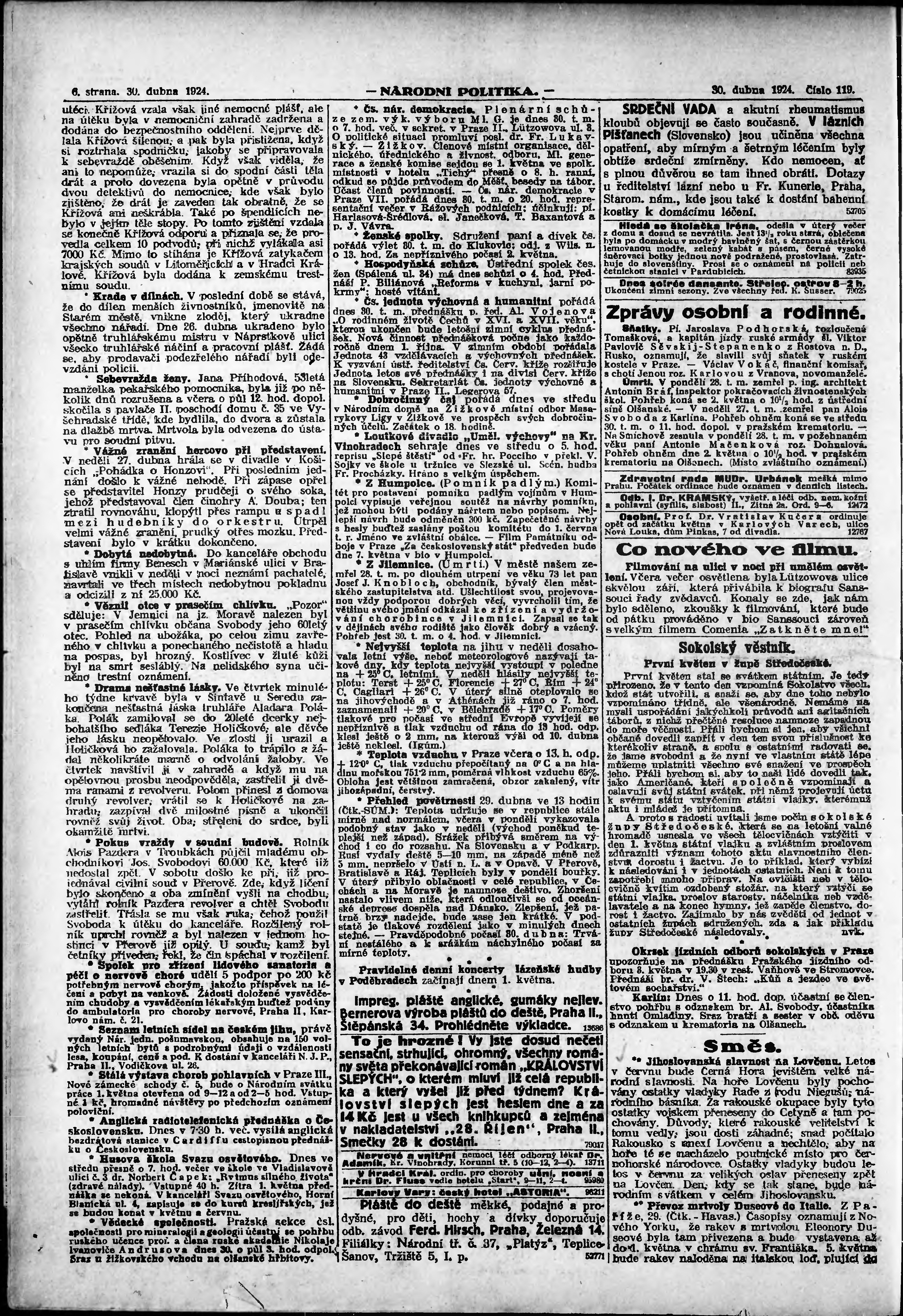 * Datum vydání výtisku: 30.4.1924 Číslo výtisku: 119 Poznámky k výtisku: ranní vydání; vydání pro Prahu;