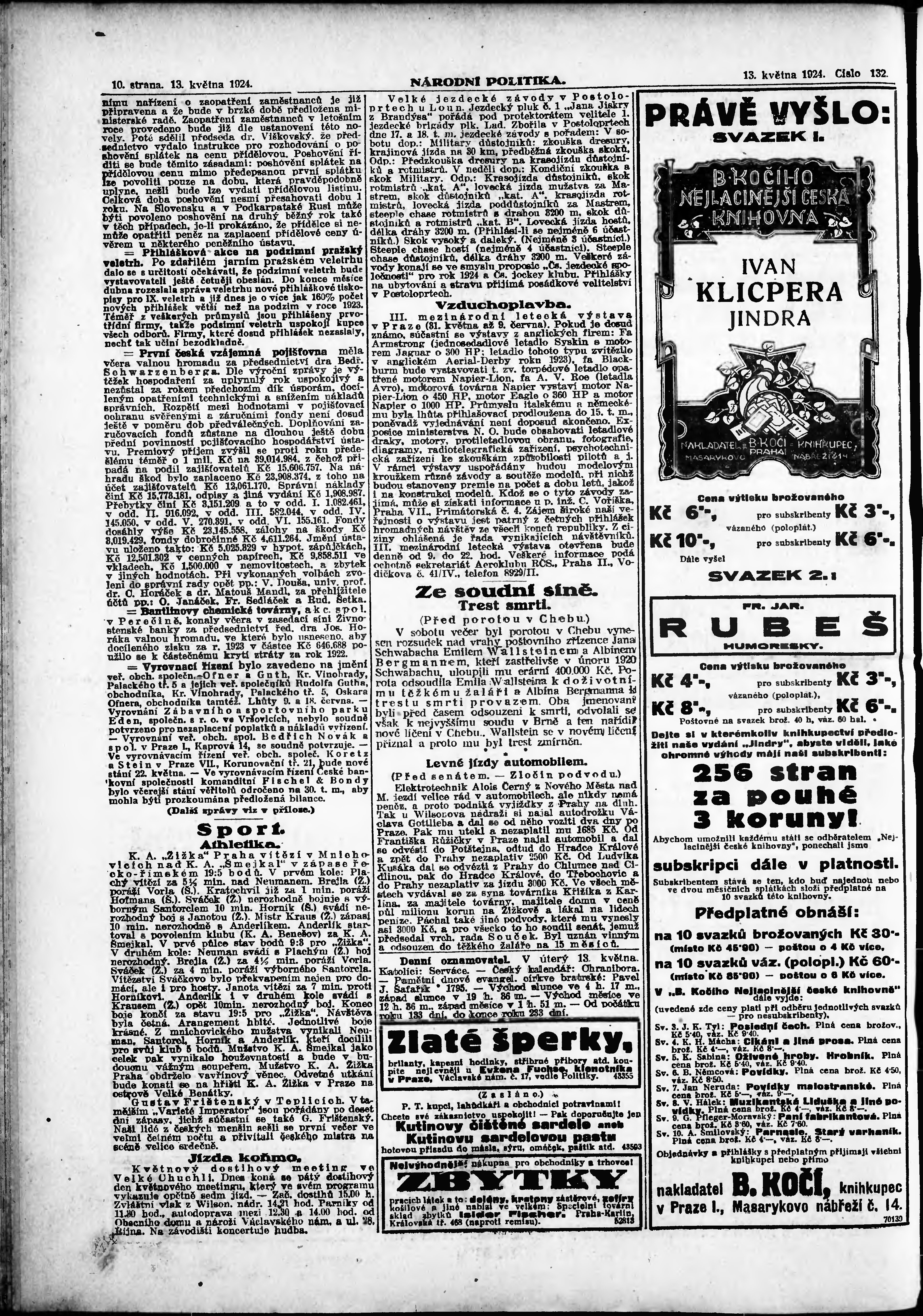 * Datum vydání výtisku: 13.5.1924 Číslo výtisku: 132 Poznámky k výtisku: ranní vydání; vydání pro Prahu;