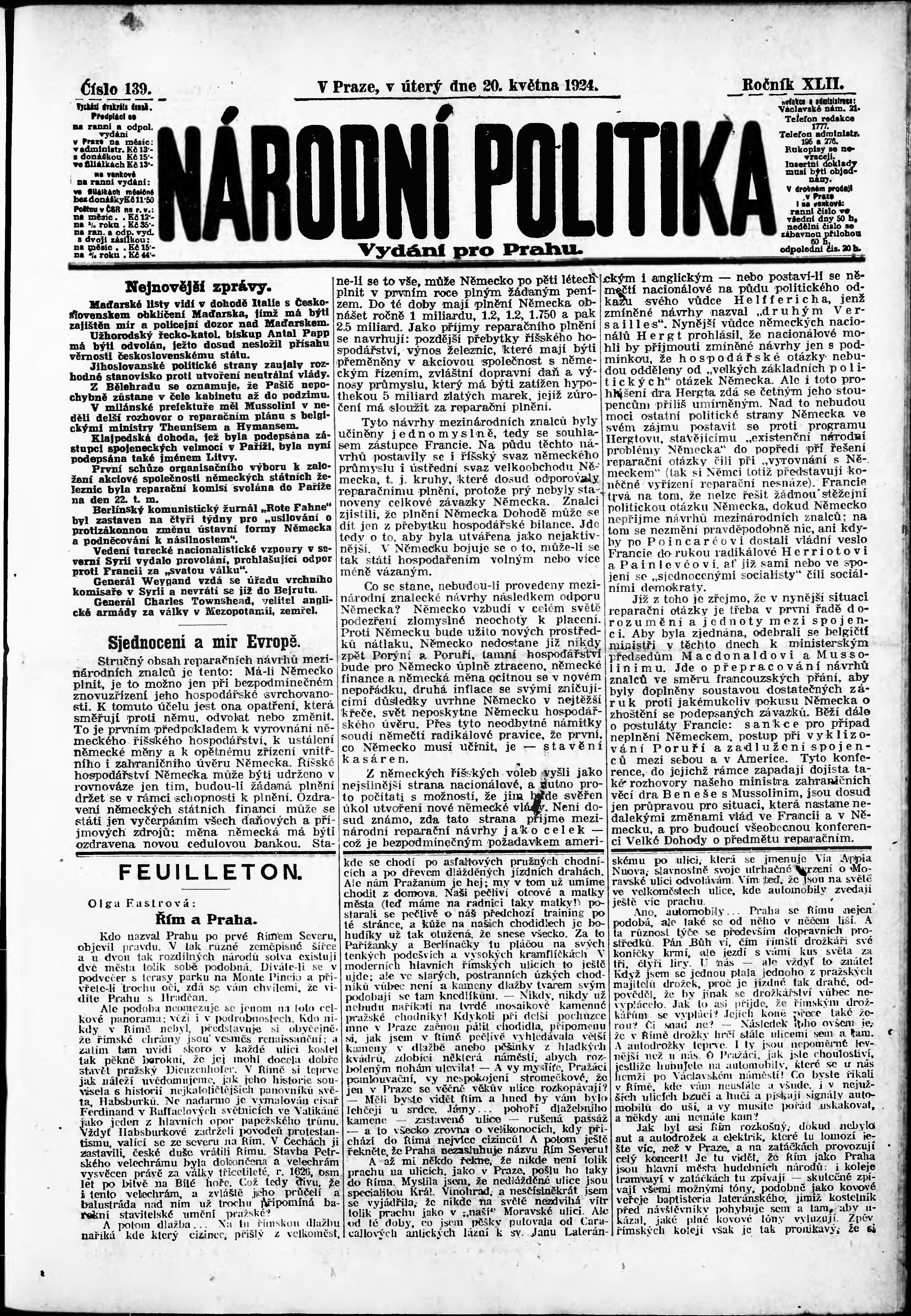 ranní vydání; vydání pro Prahu;
