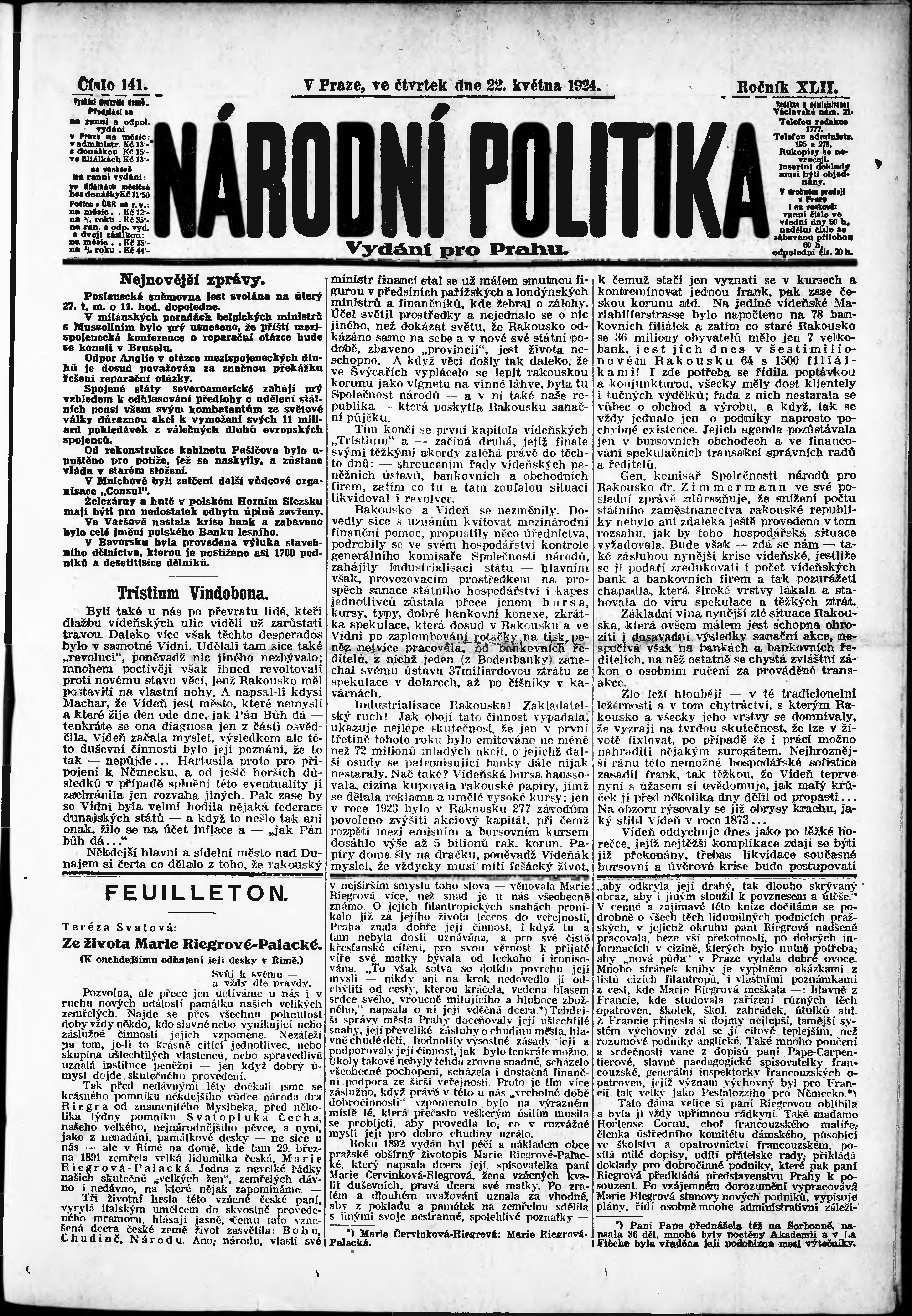 ranní vydání; vydání pro Prahu;