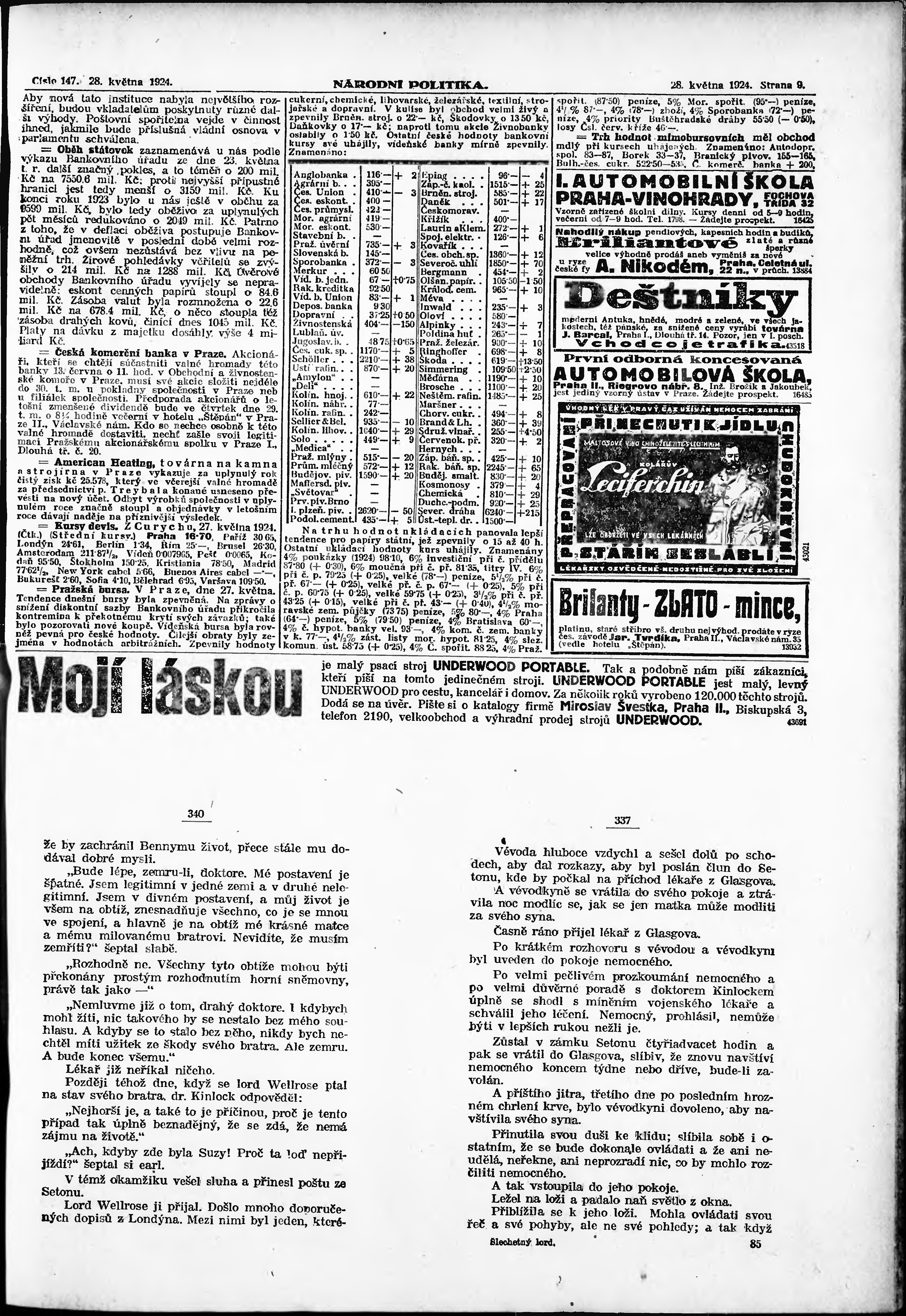 * Datum vydání výtisku: 28.5.1924 Číslo výtisku: 147 Poznámky k výtisku: ranní vydání; vydání pro Prahu;