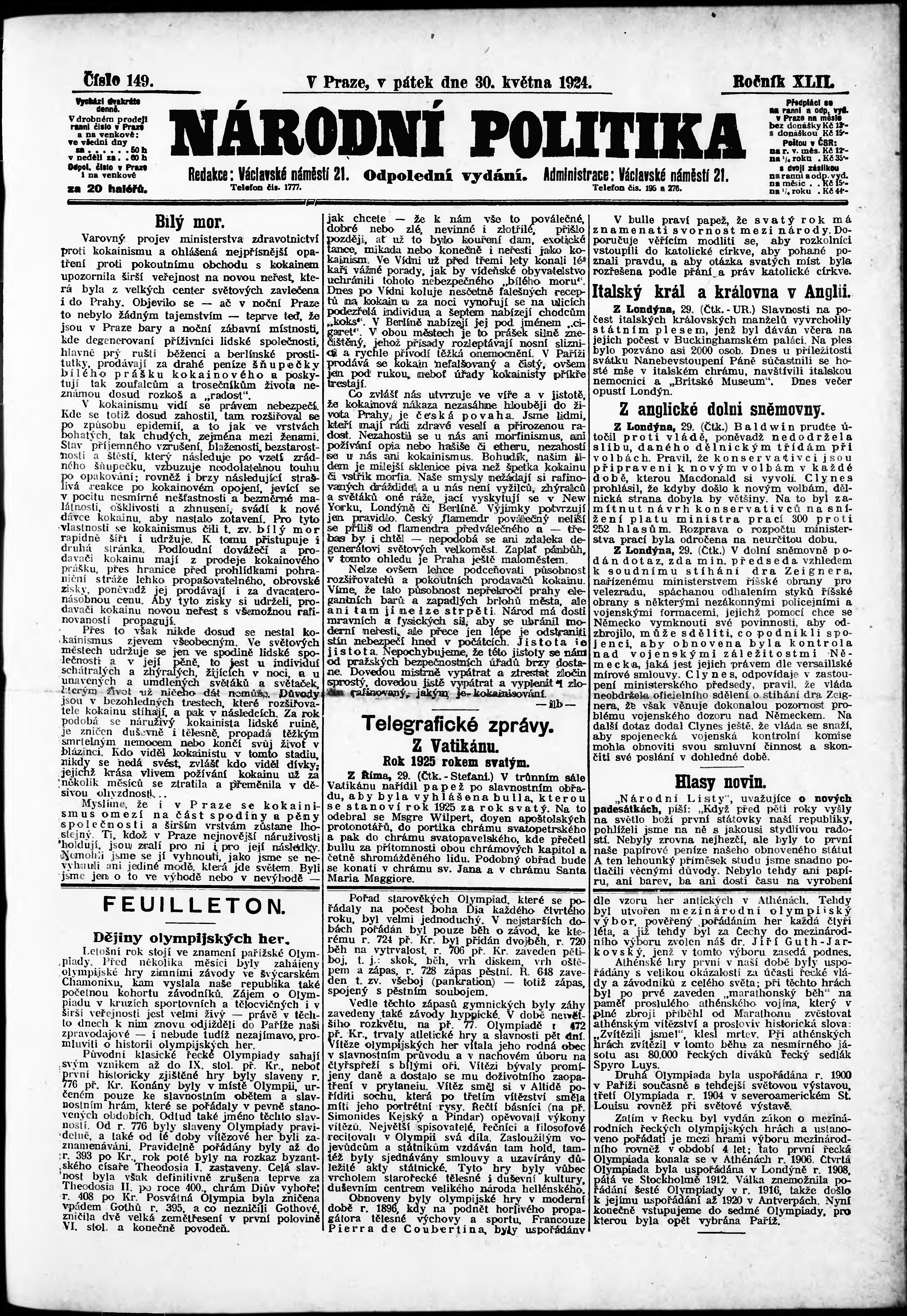 * Datum vydání výtisku: 30.5.1924 Číslo výtisku: 149 Poznámky k výtisku: odpolední vydání;