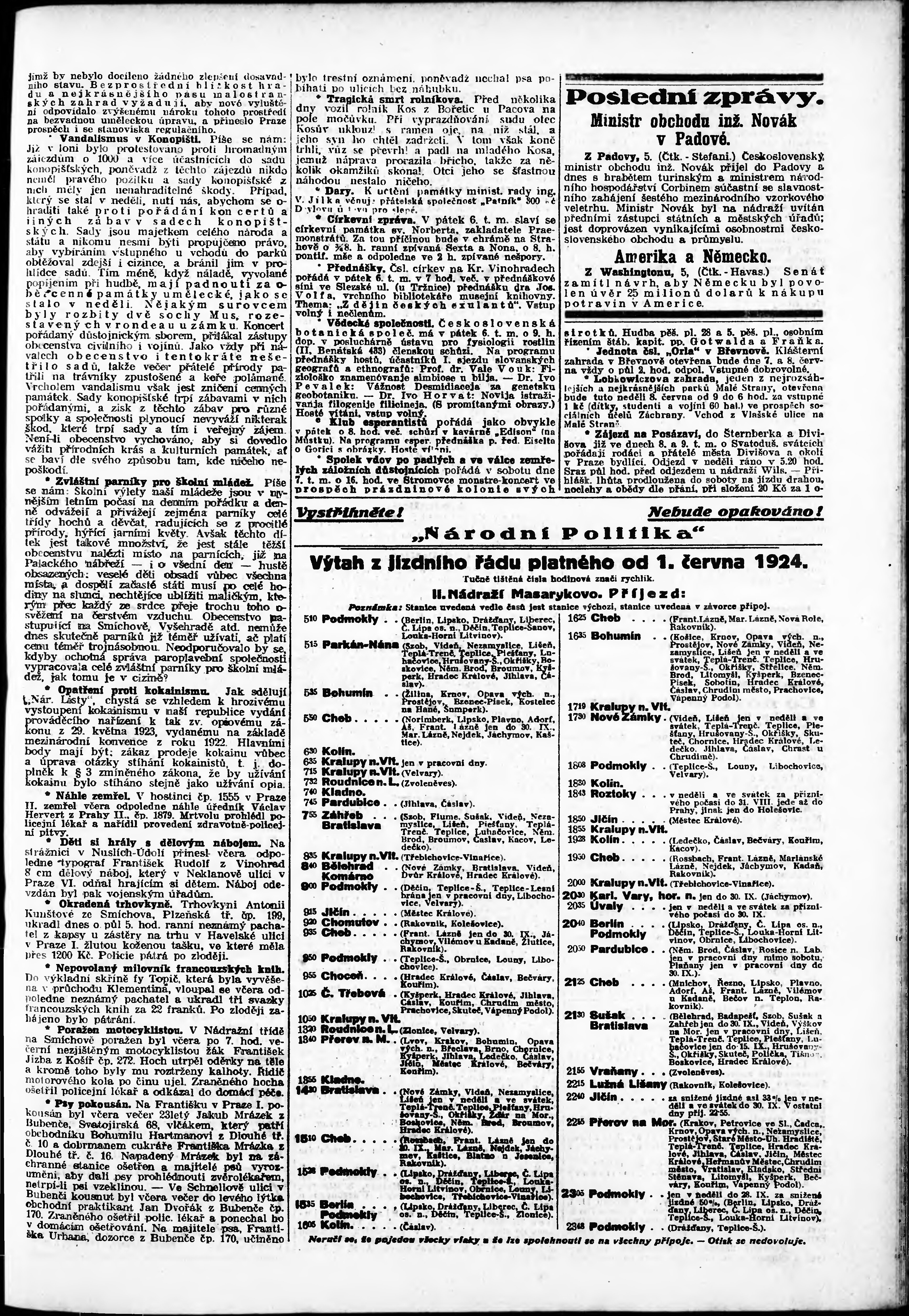 * Datum vydání výtisku: 5.6.1924 Číslo výtisku: 155 Poznámky k výtisku: odpolední vydání;