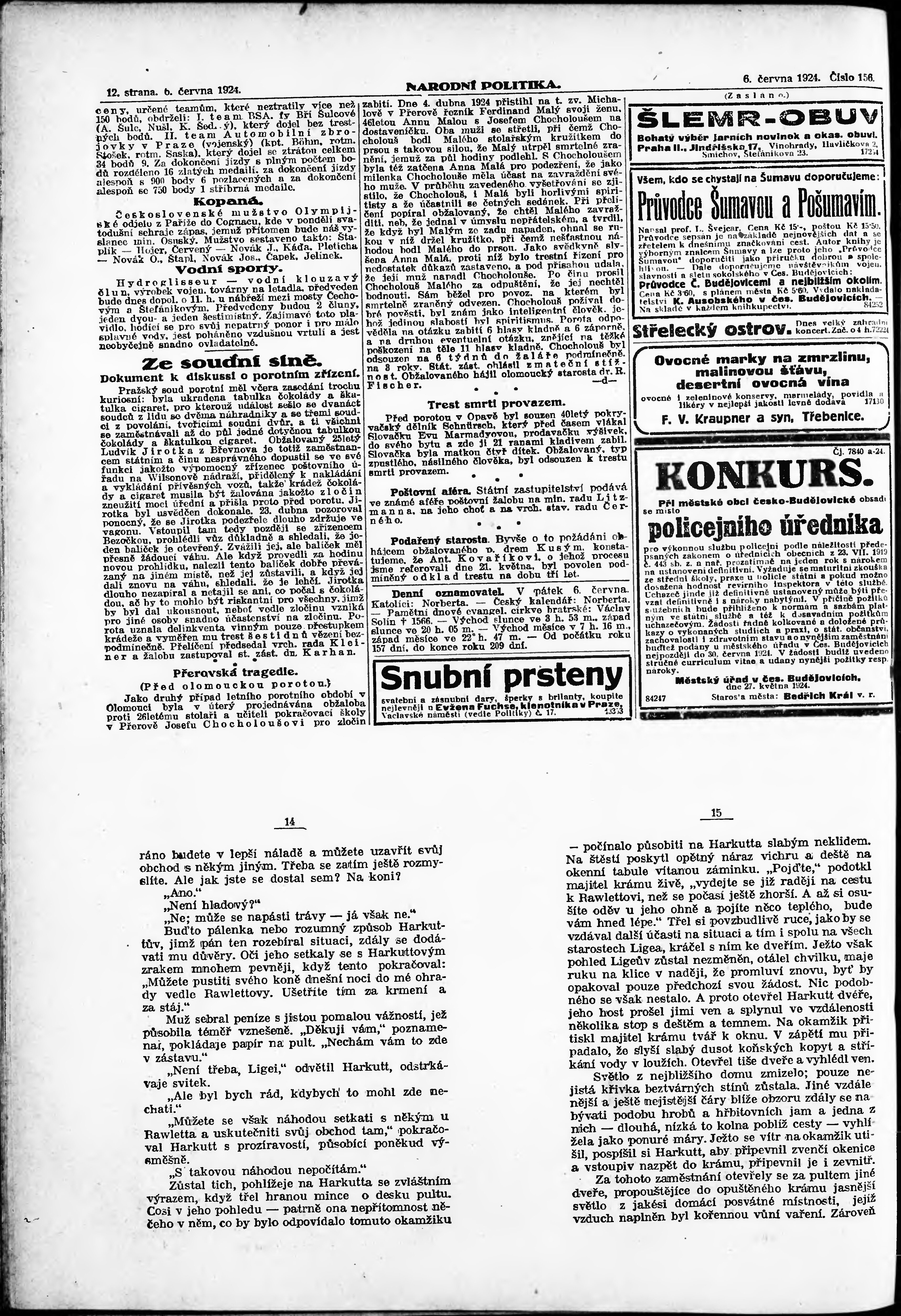 * Datum vydání výtisku: 6.6.1924 Číslo výtisku: 156 Poznámky k výtisku: ranní vydání; vydání pro Prahu;