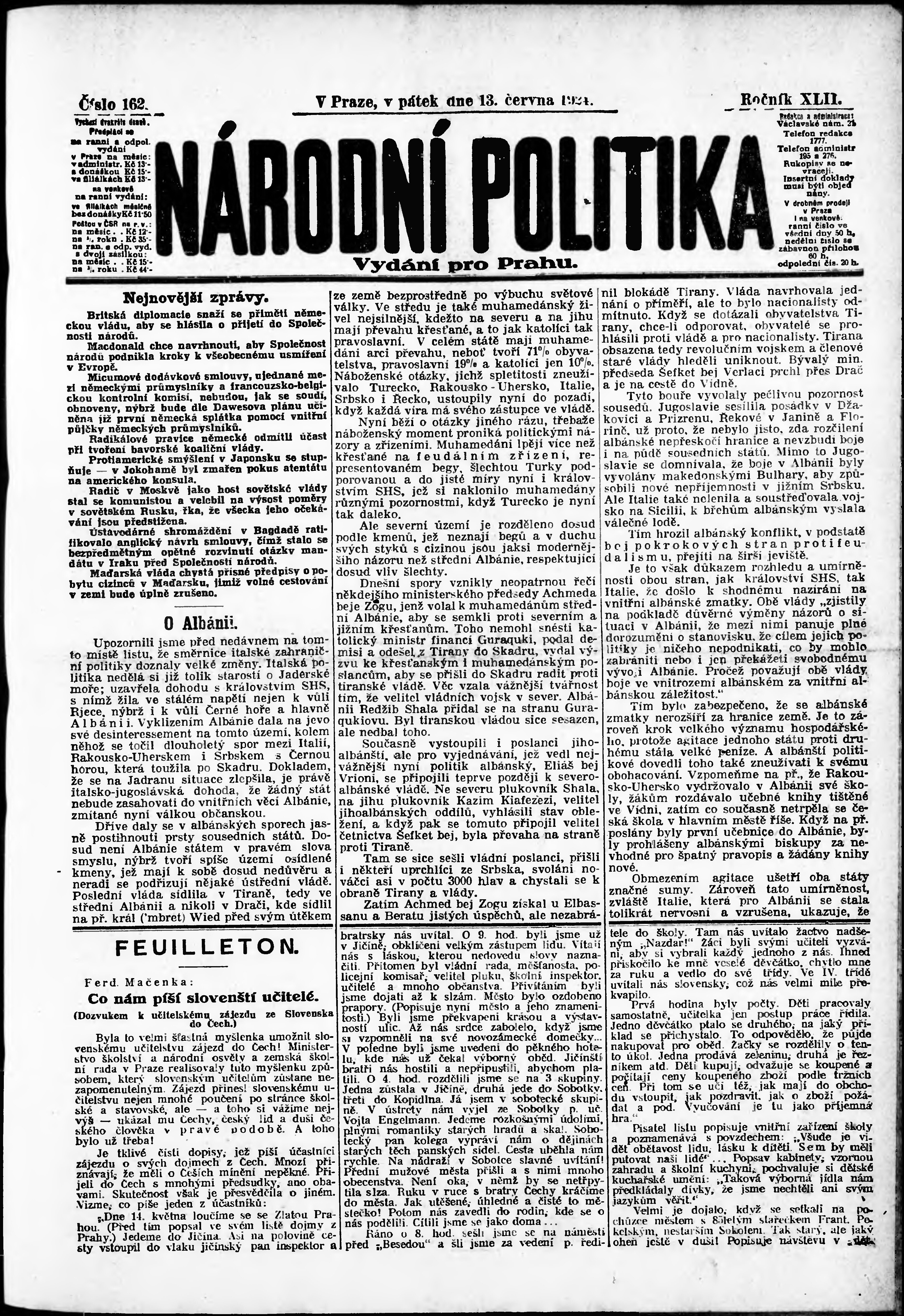ranní vydání; vydání pro Prahu;