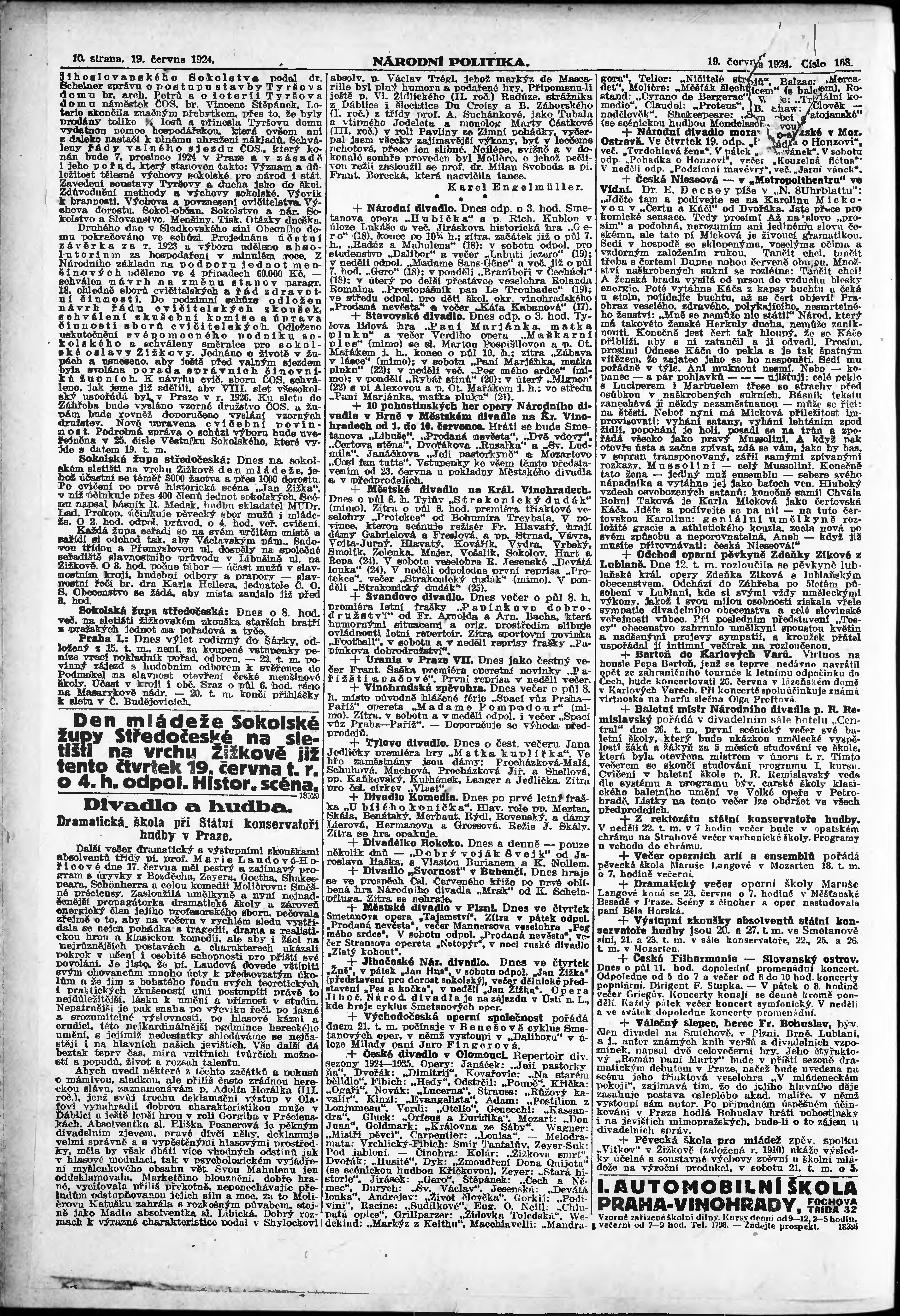 * Datum vydání výtisku: 19.6.1924 Číslo výtisku: 168 Poznámky k výtisku: ranní vydání;