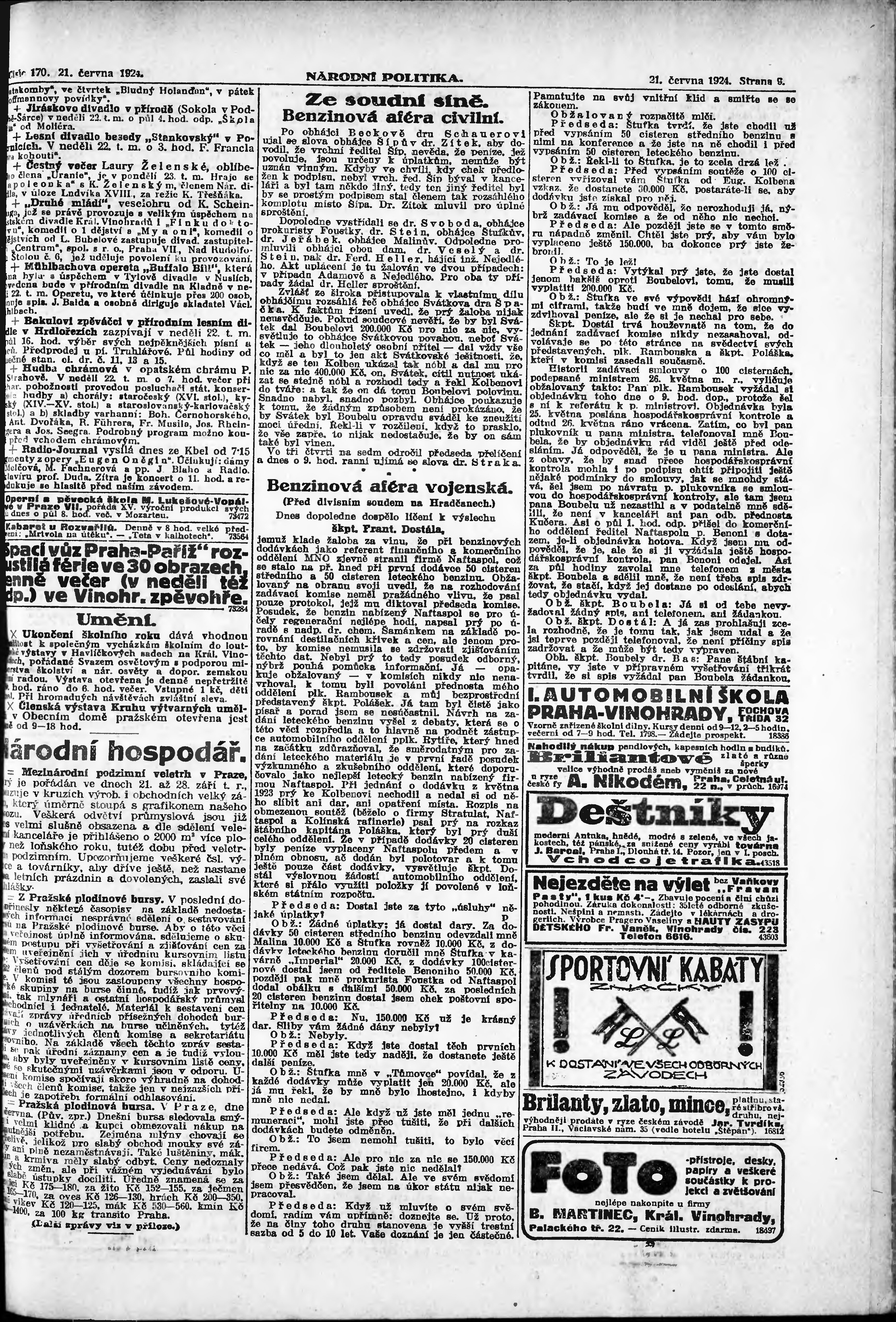 * Datum vydání výtisku: 21.6.1924 Číslo výtisku: 170 Poznámky k výtisku: ranní vydání; vydání pro Prahu;