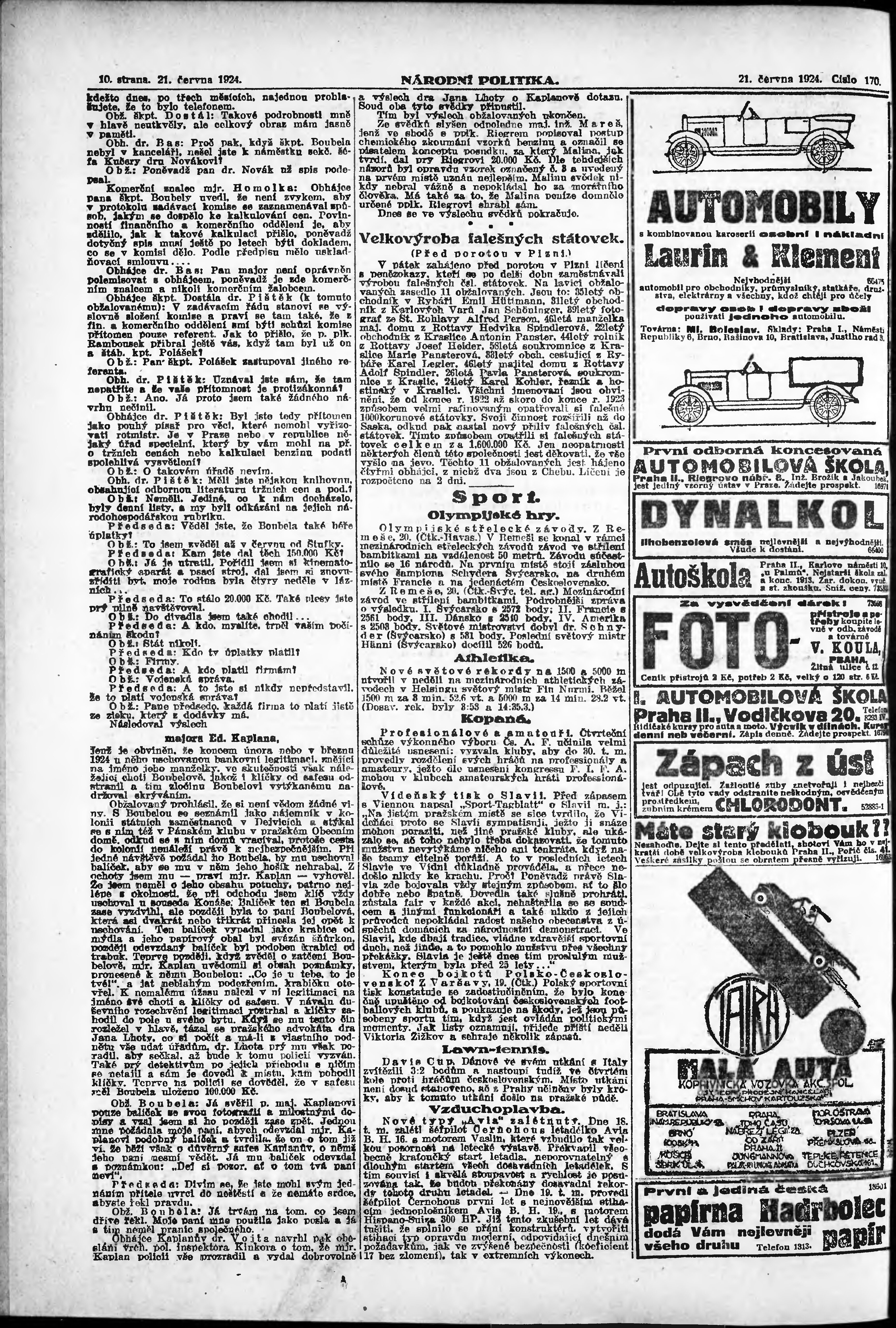 * Datum vydání výtisku: 21.6.1924 Číslo výtisku: 170 Poznámky k výtisku: ranní vydání; vydání pro Prahu;