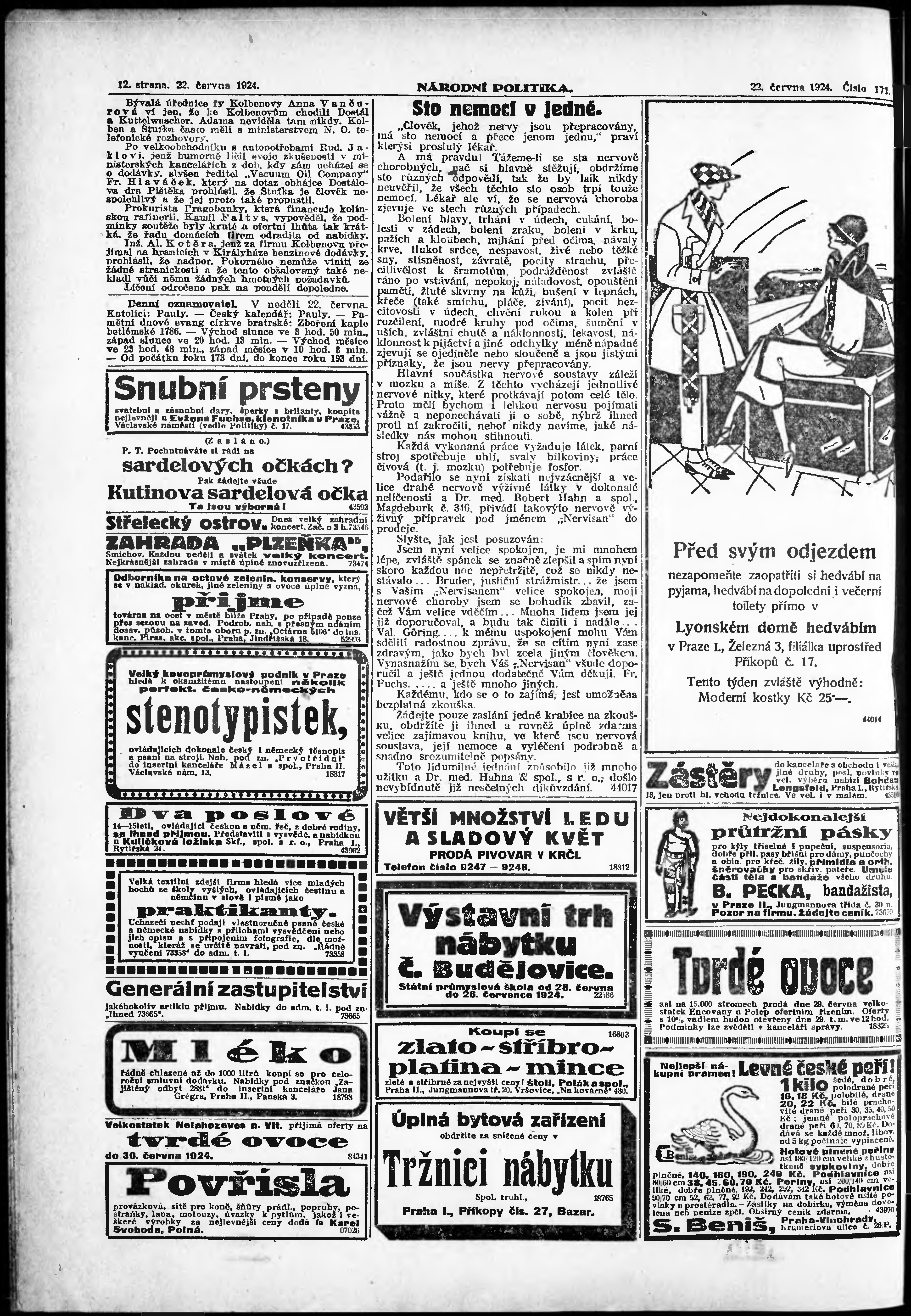 * Datum vydání výtisku: 22.6.1924 Číslo výtisku: 171 Poznámky k výtisku: ranní vydání;
