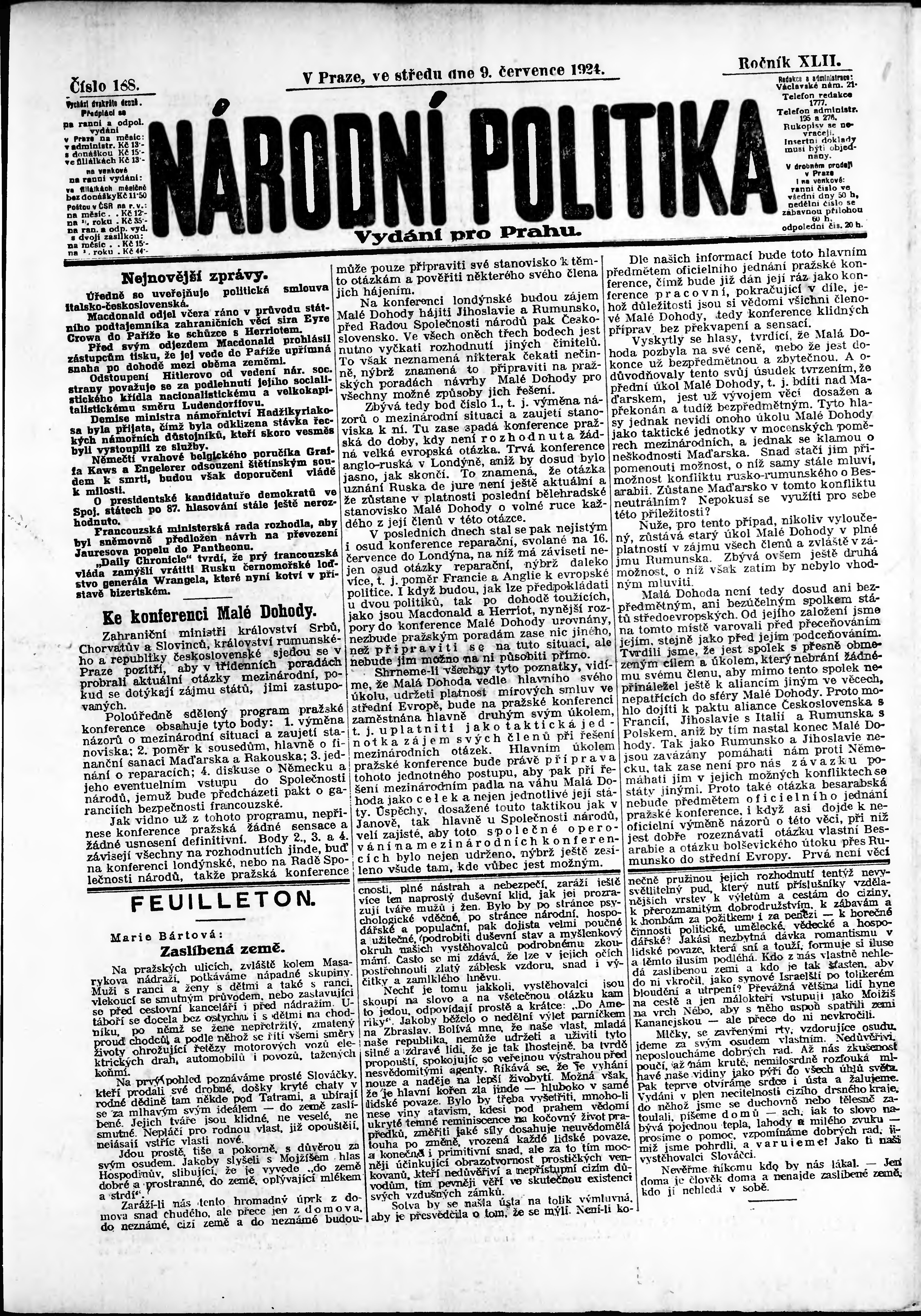 ranní vydání; vydání pro Prahu;