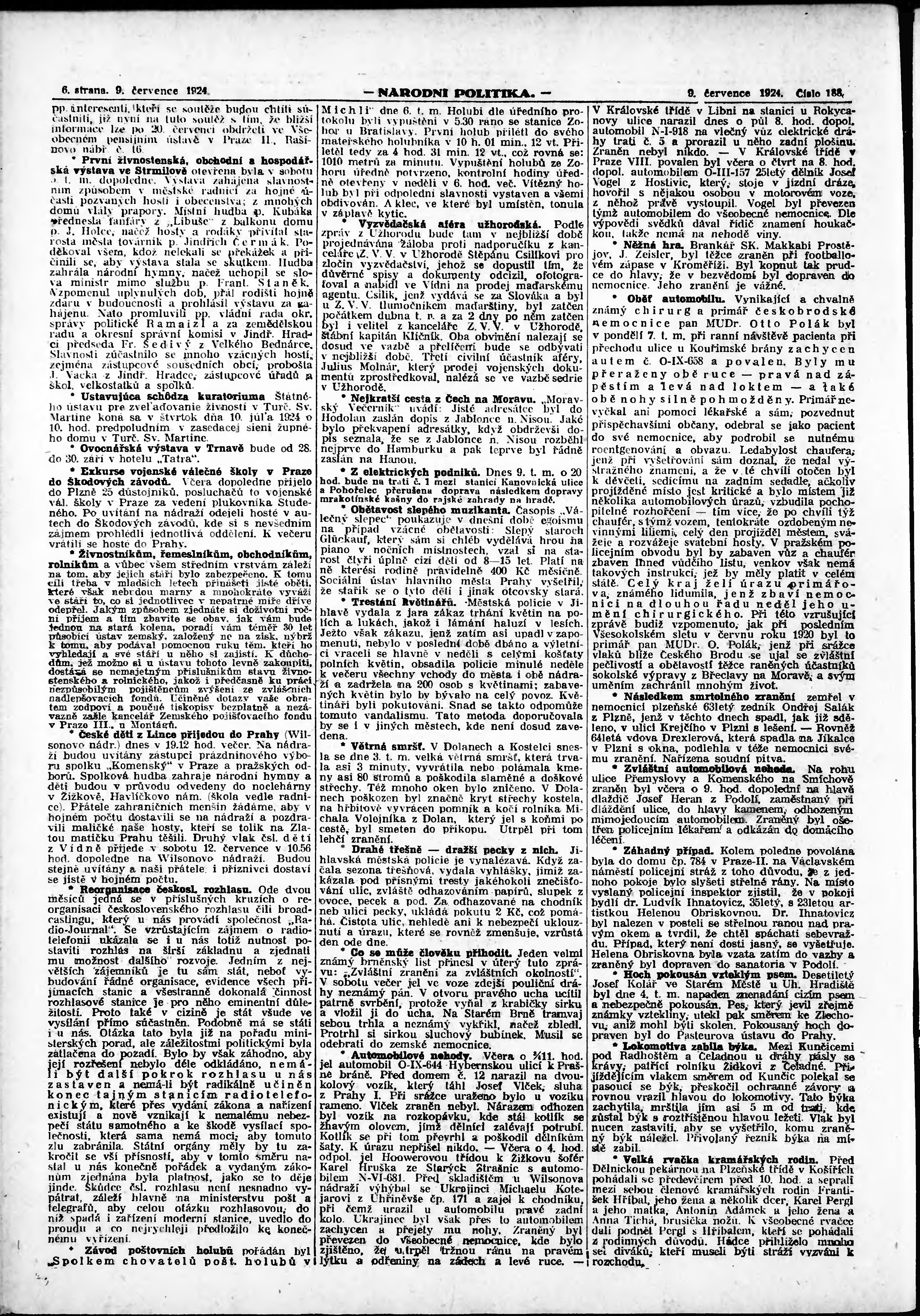 * Datum vydání výtisku: 9.7.1924 Číslo výtisku: 188 Poznámky k výtisku: ranní vydání; vydání pro Prahu;
