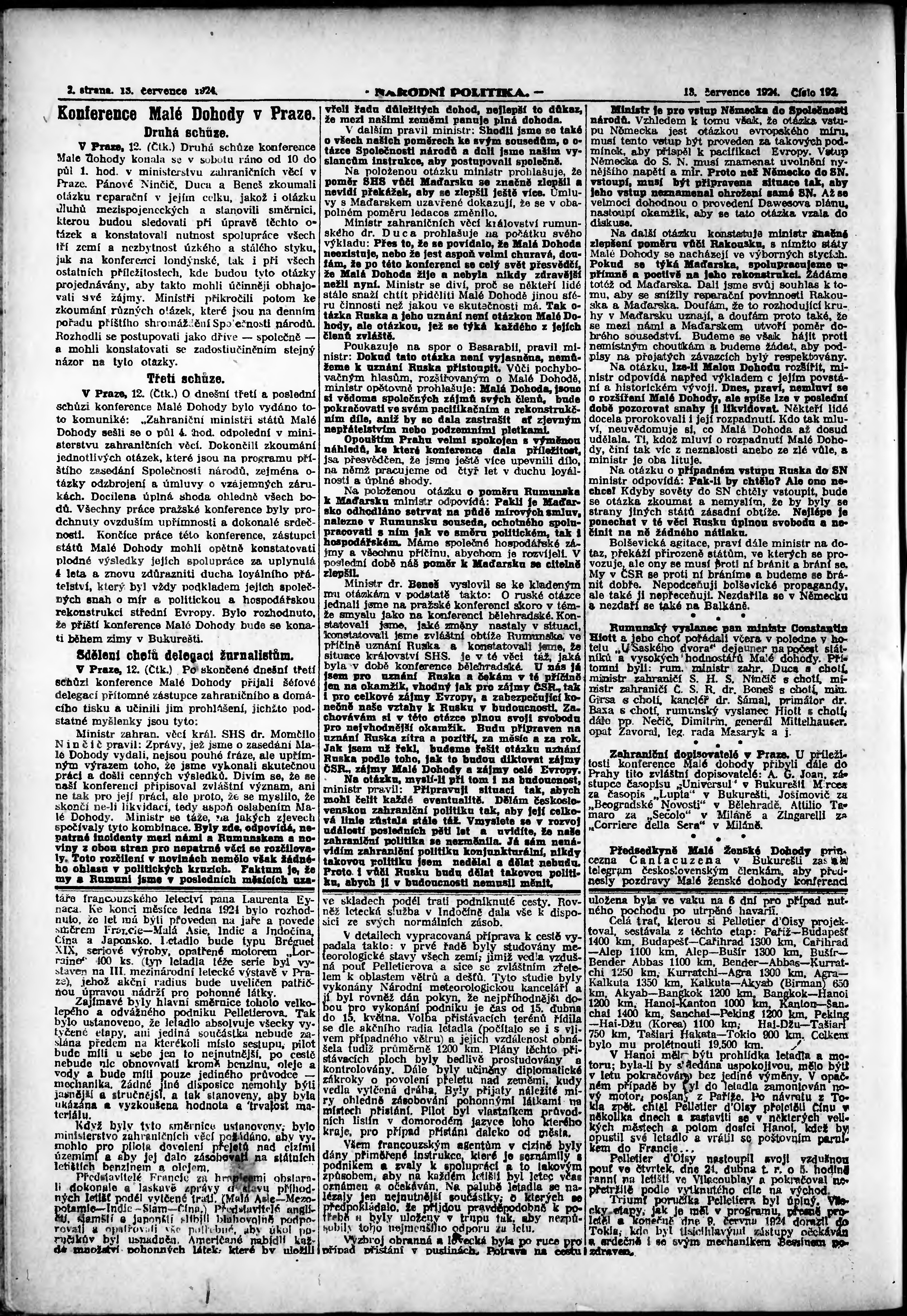 * Datum vydání výtisku: 13.7.1924 Číslo výtisku: 192 Poznámky k výtisku: ranní vydání;
