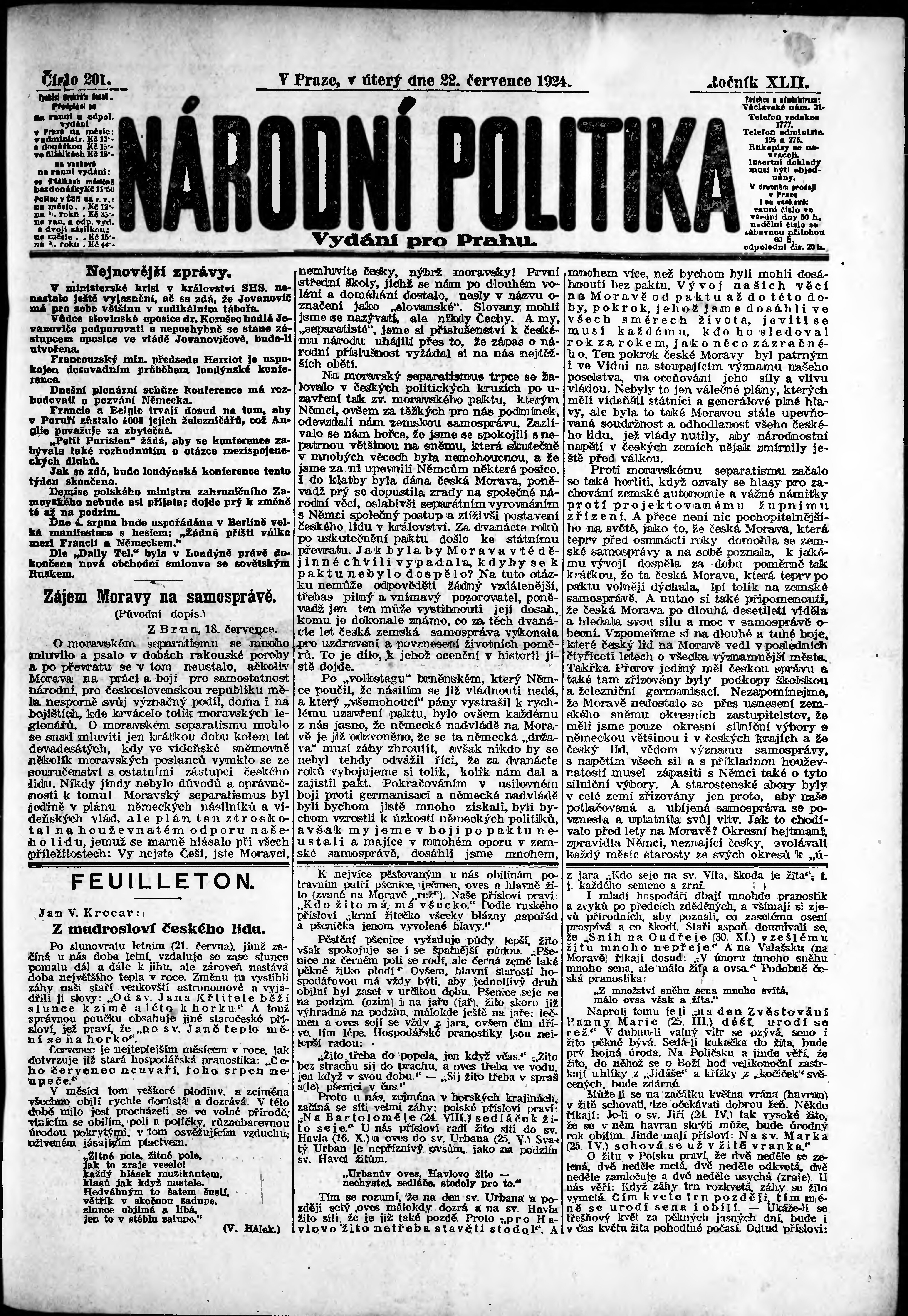 ranní vydání; vydání pro Prahu;