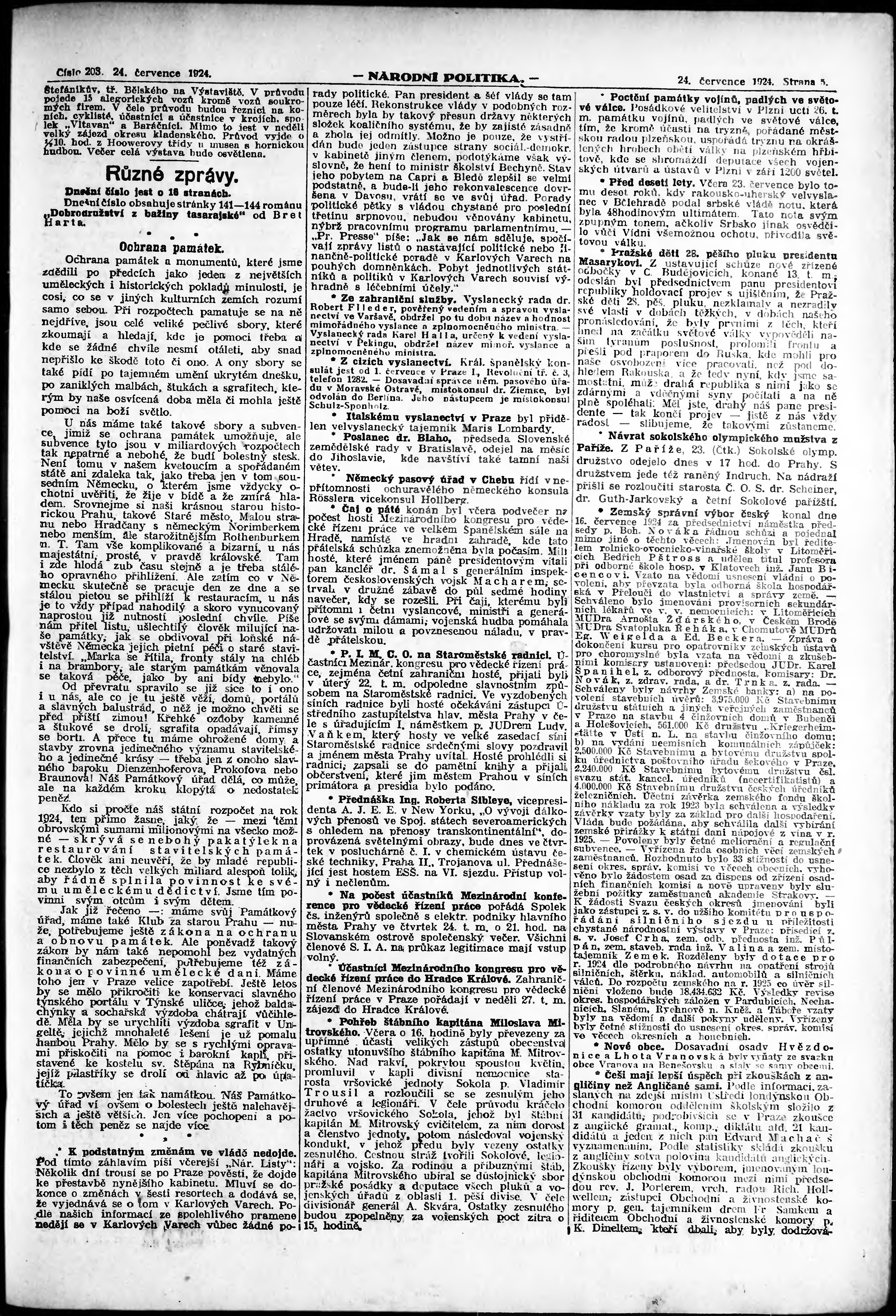 * Datum vydání výtisku: 24.7.1924 Číslo výtisku: 203 Poznámky k výtisku: ranní vydání; vydání pro Prahu;