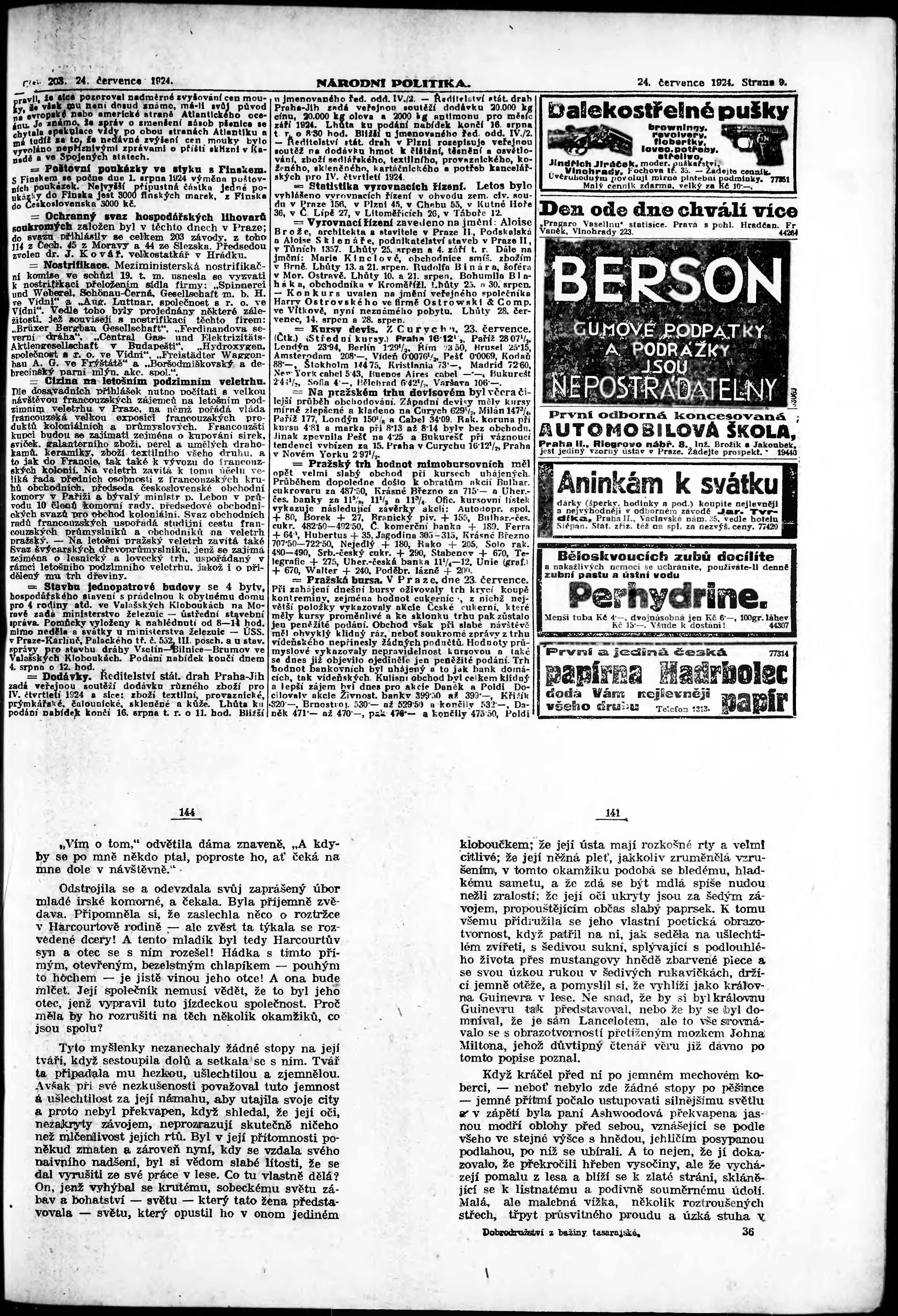 * Datum vydání výtisku: 24.7.1924 Číslo výtisku: 203 Poznámky k výtisku: ranní vydání; vydání pro Prahu;
