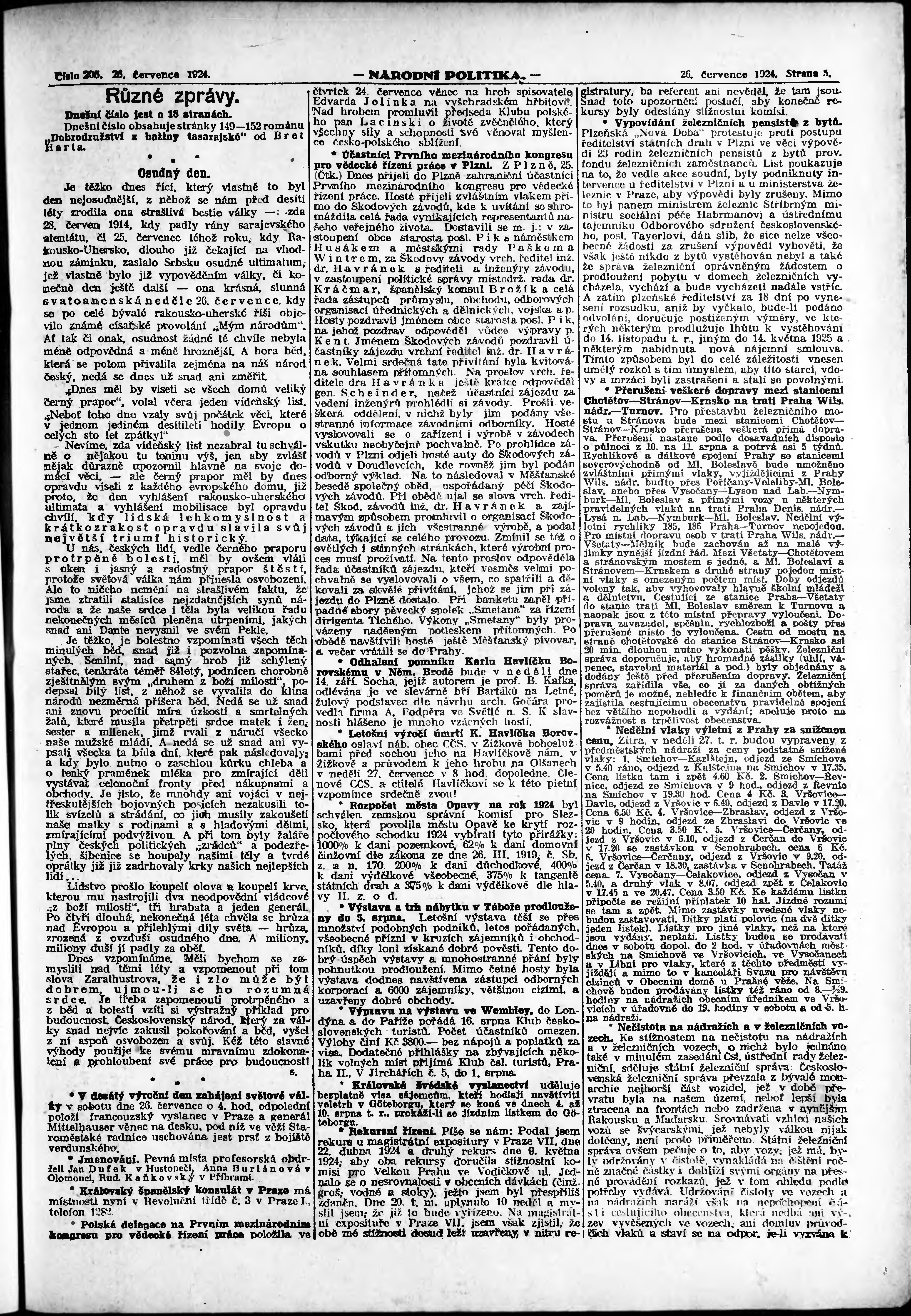 * Datum vydání výtisku: 26.7.1924 Číslo výtisku: 205 Poznámky k výtisku: ranní vydání; vydání pro Prahu;