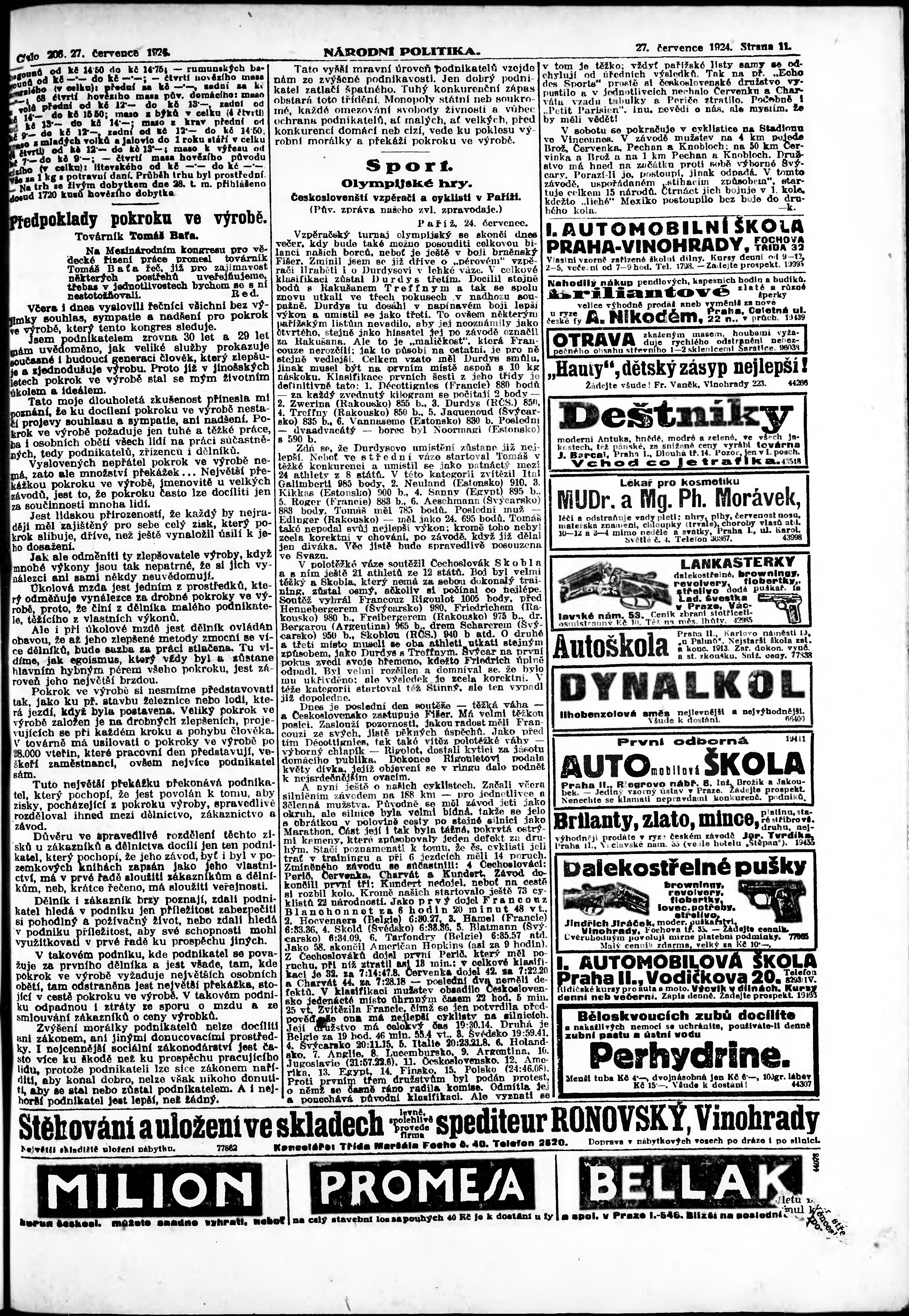 * Datum vydání výtisku: 27.7.1924 Číslo výtisku: 206 Poznámky k výtisku: ranní vydání;