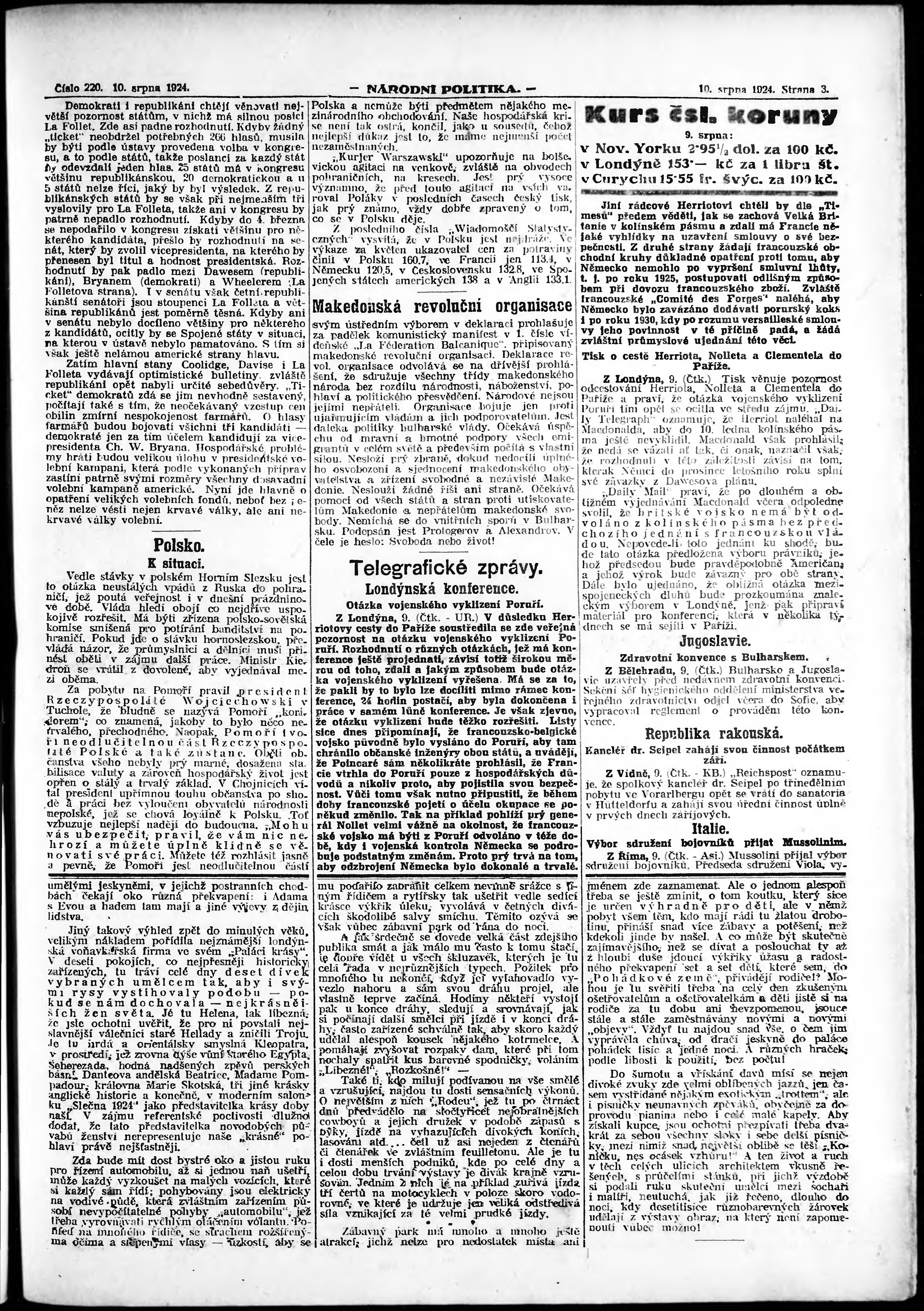 * Datum vydání výtisku: 10.8.1924 Číslo výtisku: 220 Poznámky k výtisku: ranní vydání;