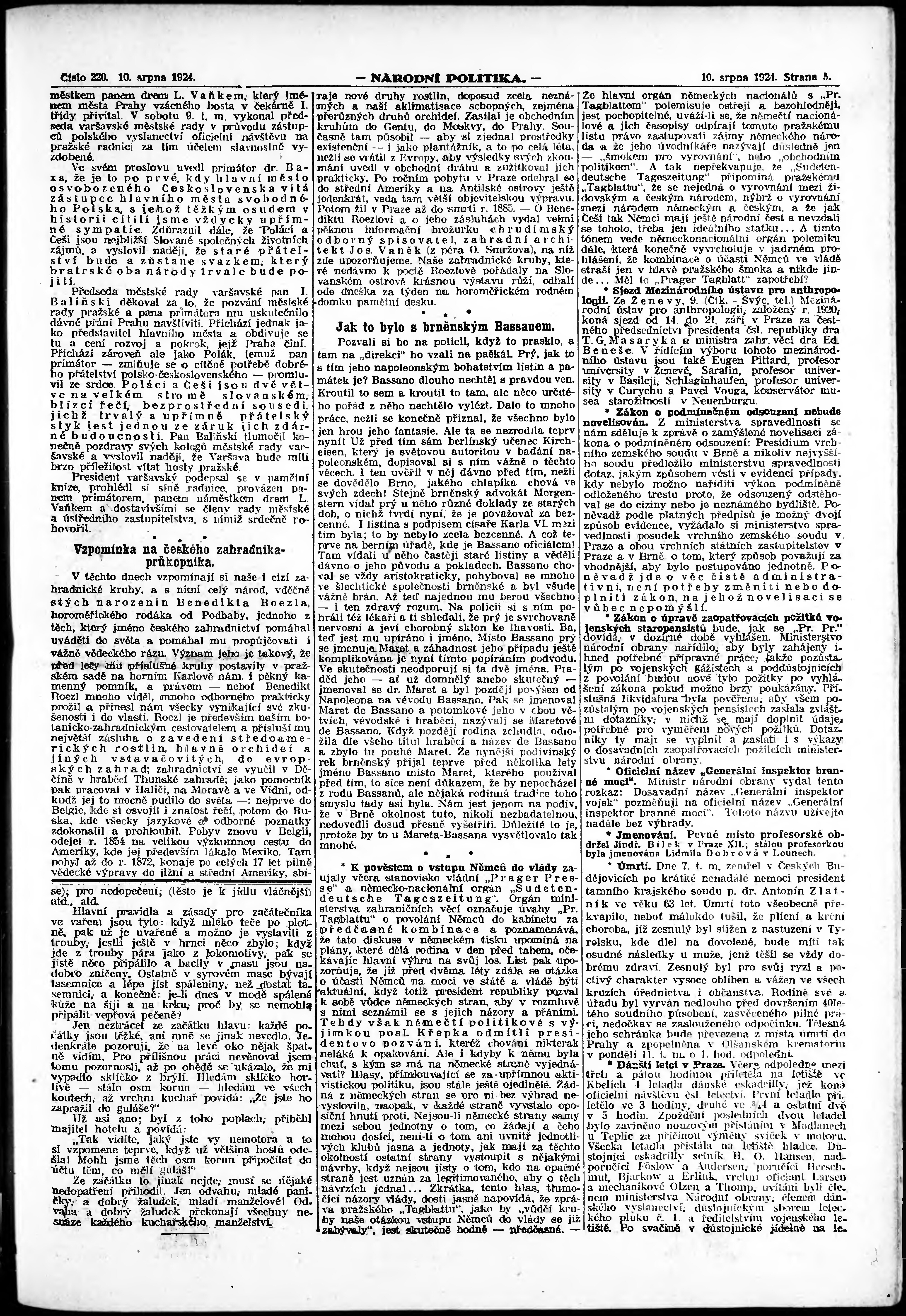 * Datum vydání výtisku: 10.8.1924 Číslo výtisku: 220 Poznámky k výtisku: ranní vydání;