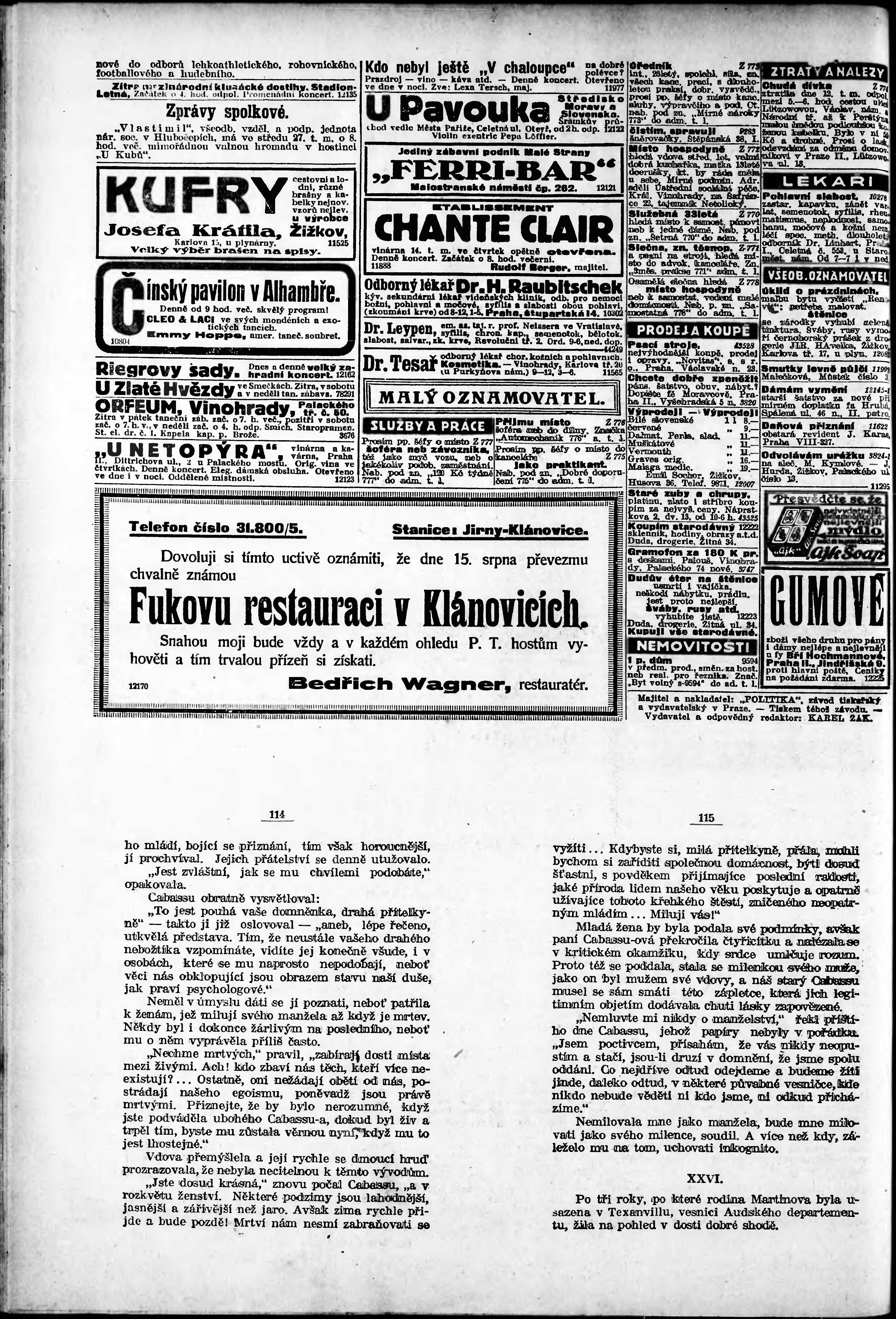 * Datum vydání výtisku: 14.8.1924 Číslo výtisku: 224 Poznámky k výtisku: odpolední vydání;