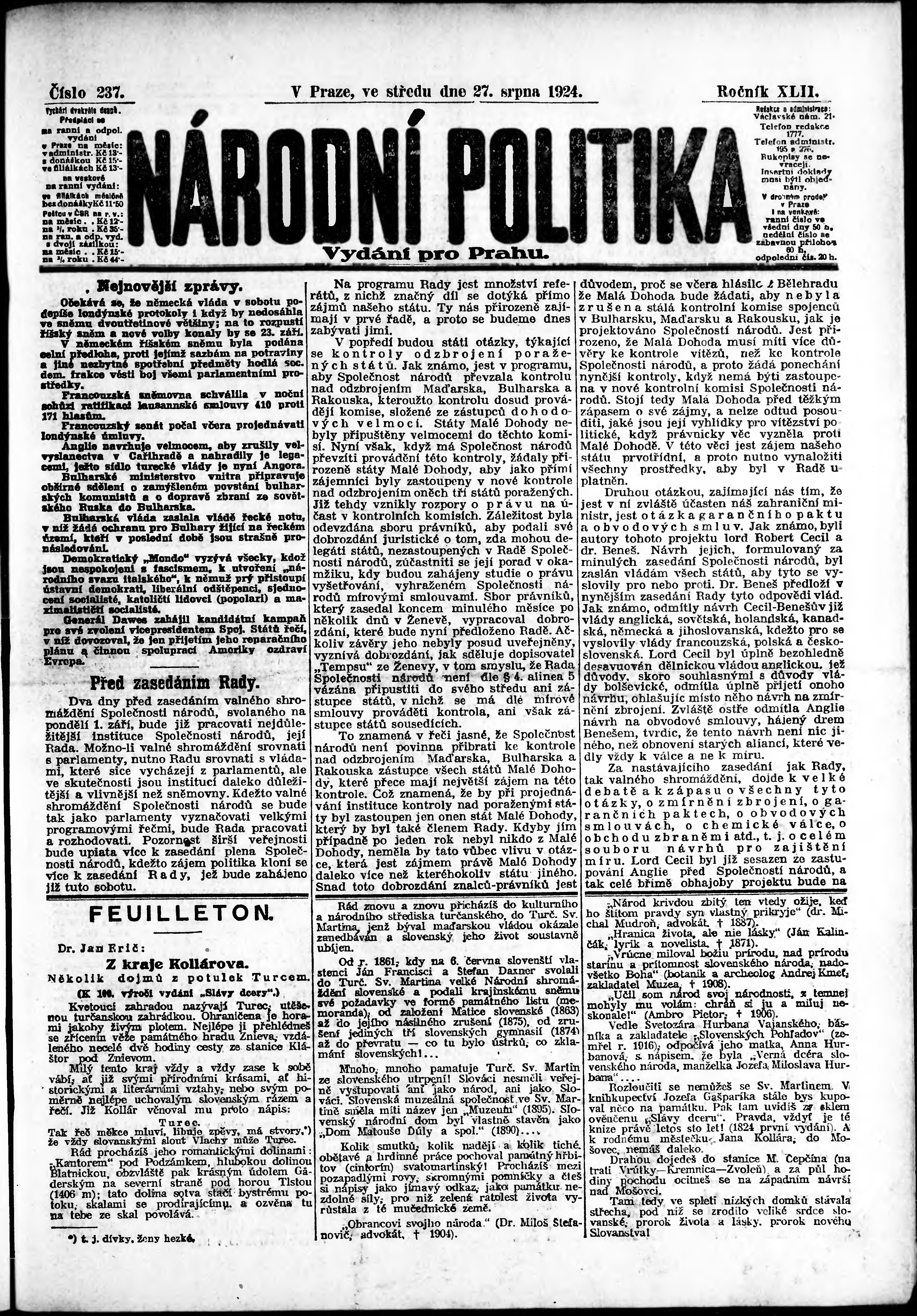 ranní vydání; vydání pro Prahu;