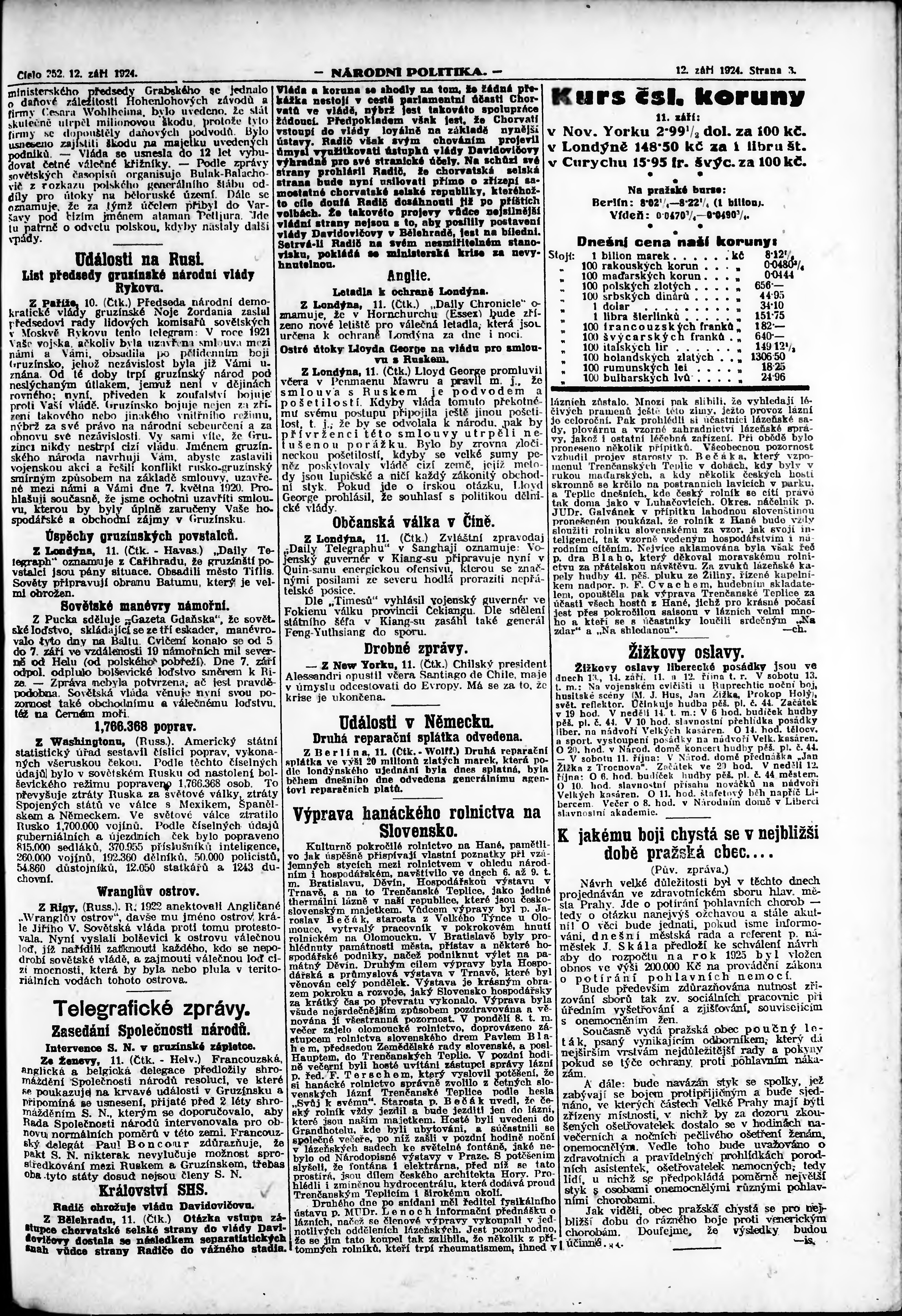 * Datum vydání výtisku: 12.9.1924 Číslo výtisku: 252 Poznámky k výtisku: ranní vydání; vydání pro Prahu;