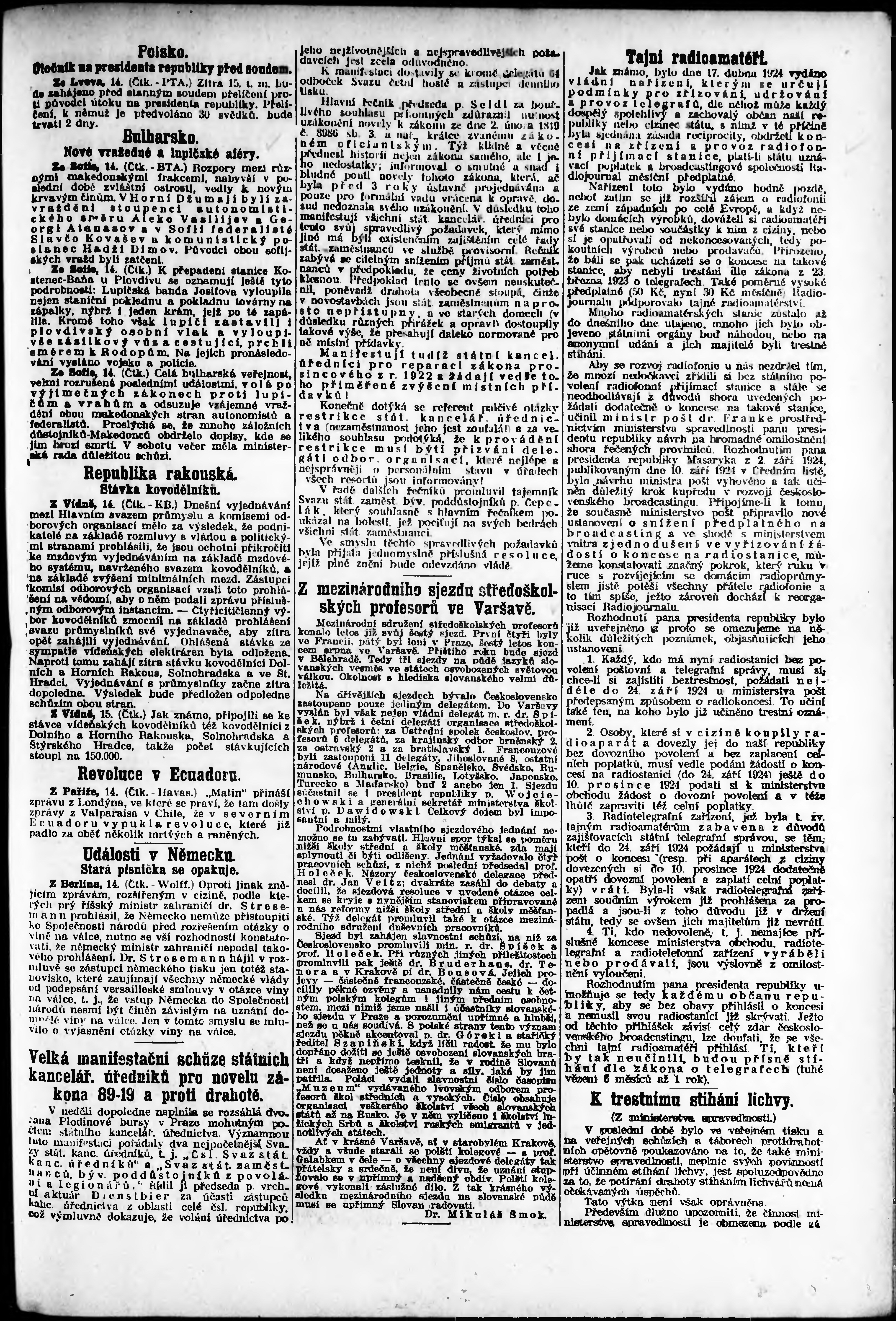 * Datum vydání výtisku: 15.9.1924 Číslo výtisku: 255 Poznámky k výtisku: odpolední vydání;