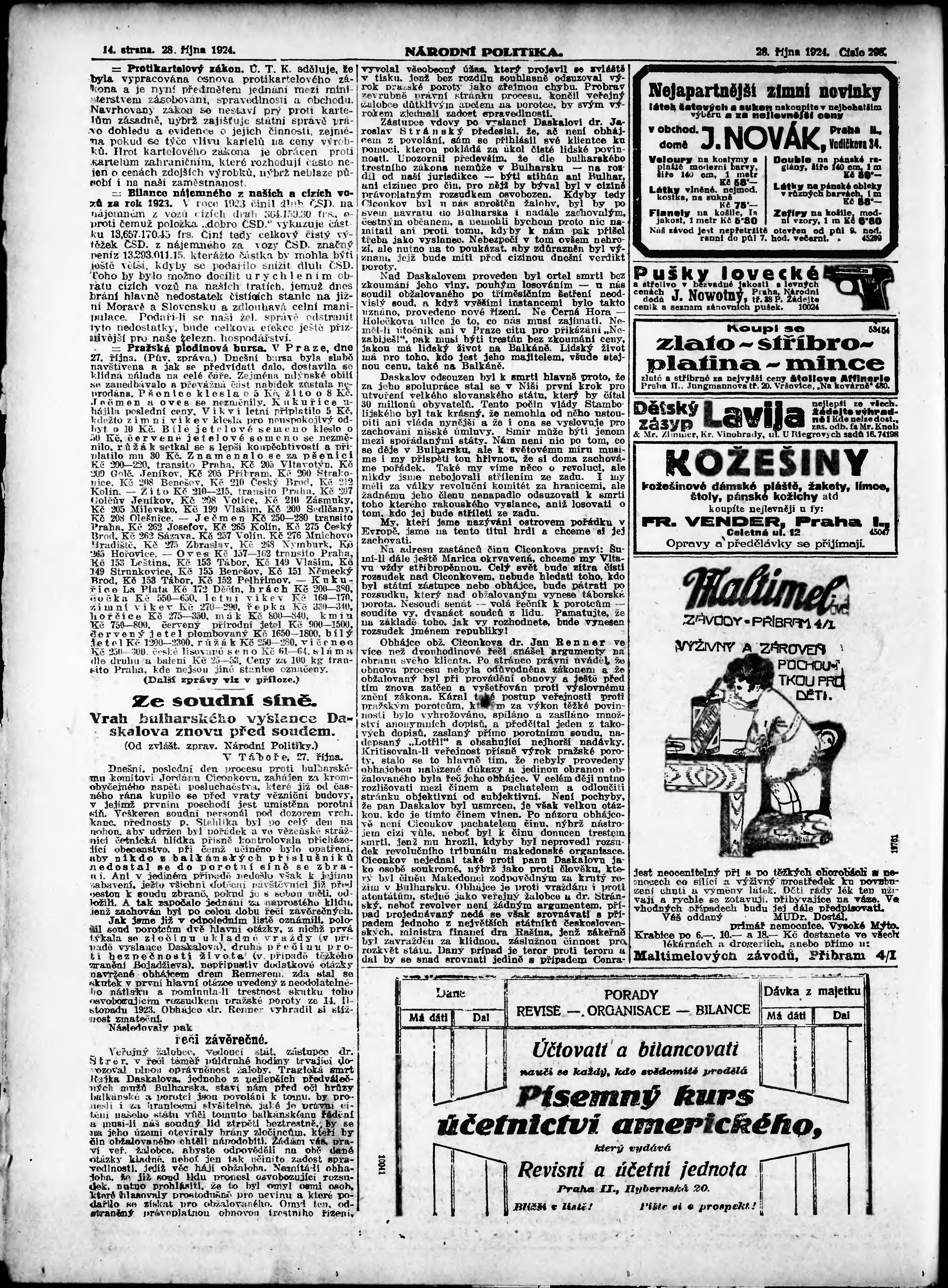 * Datum vydání výtisku: 28.10.1924 Číslo výtisku: 298 Poznámky k výtisku: ranní vydání;