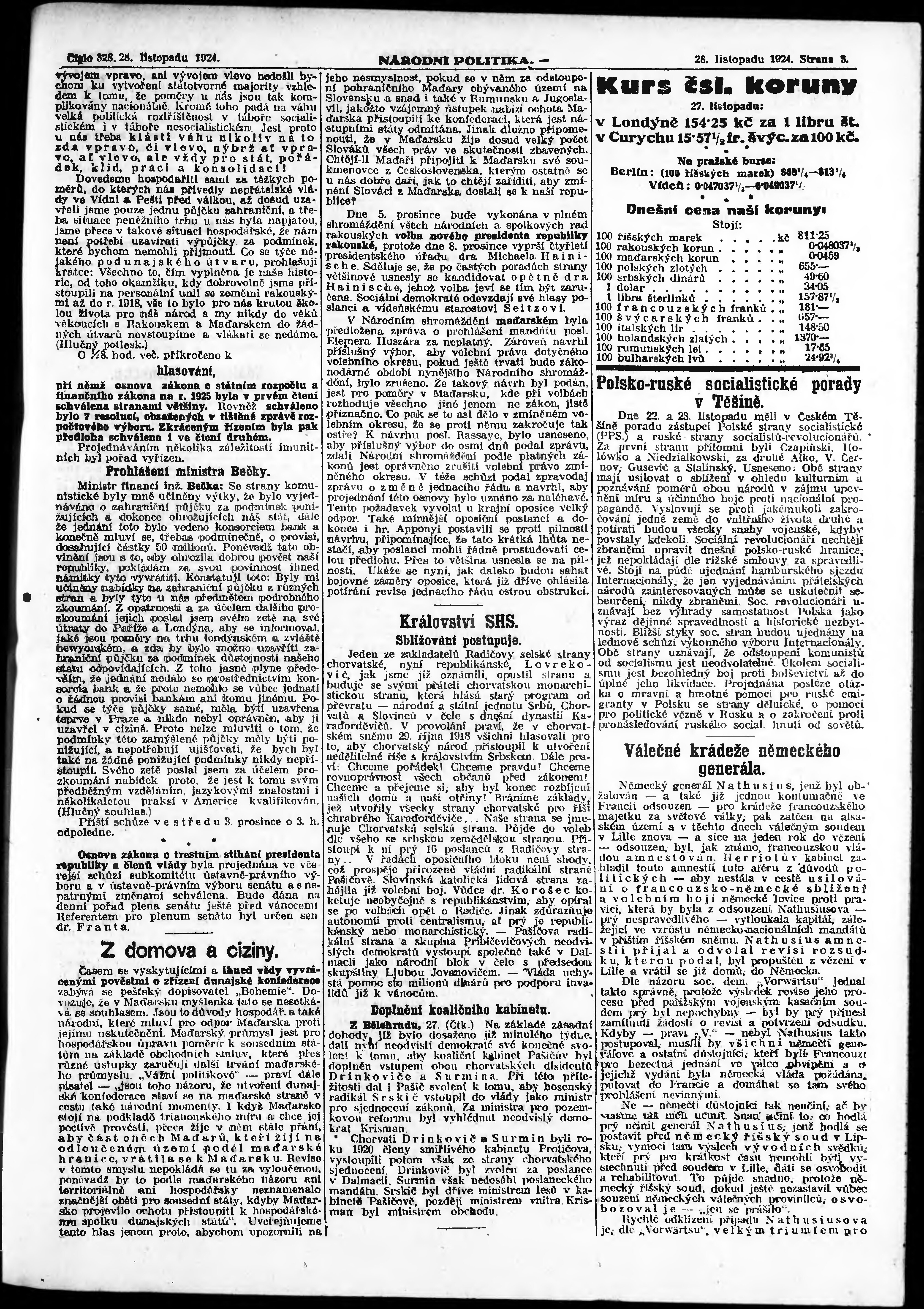 * Datum vydání výtisku: 28.11.1924 Číslo výtisku: 328 Poznámky k výtisku: ranní vydání; vydání pro Prahu;