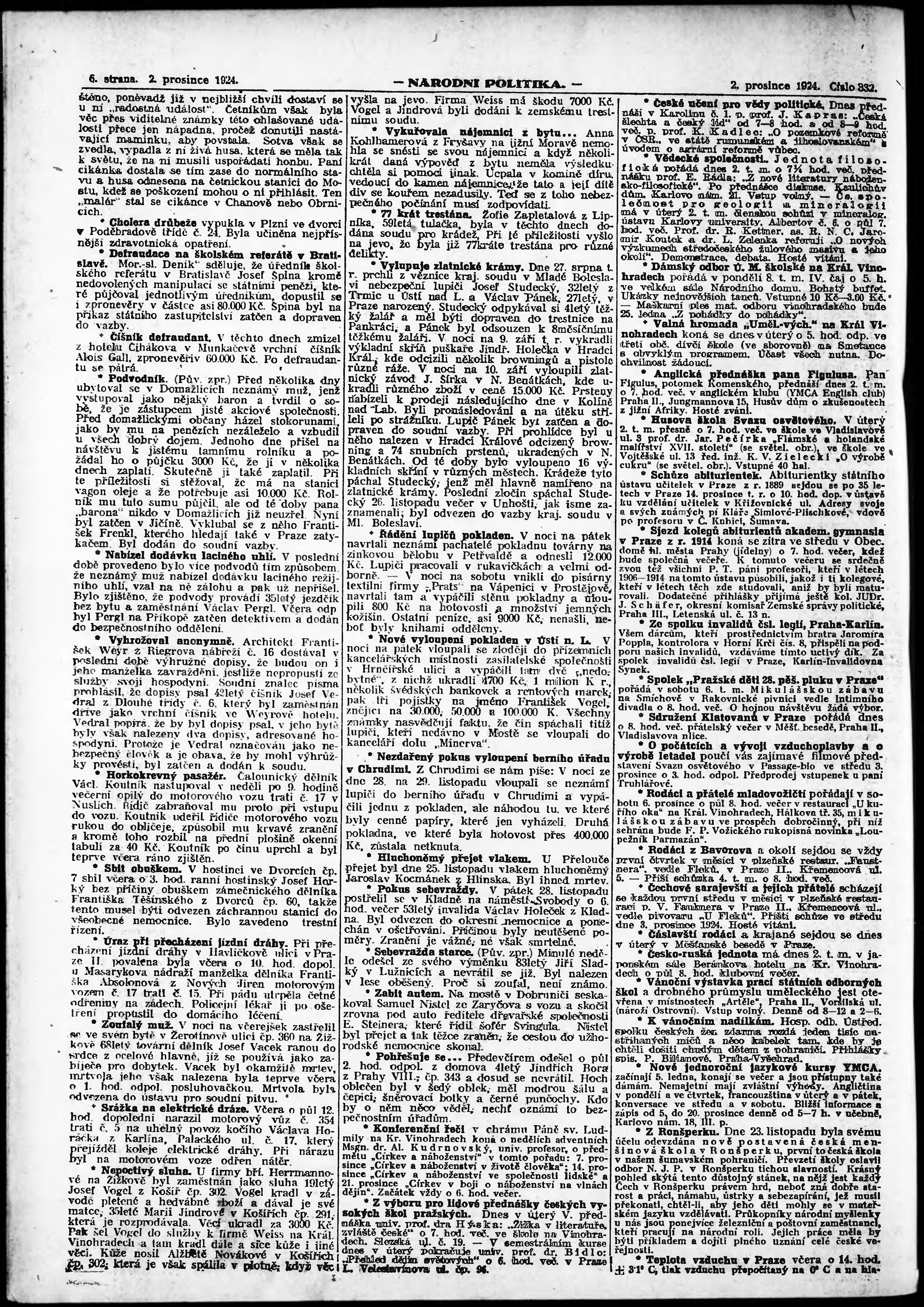 * Datum vydání výtisku: 2.12.1924 Číslo výtisku: 332 Poznámky k výtisku: ranní vydání; vydání pro Prahu;