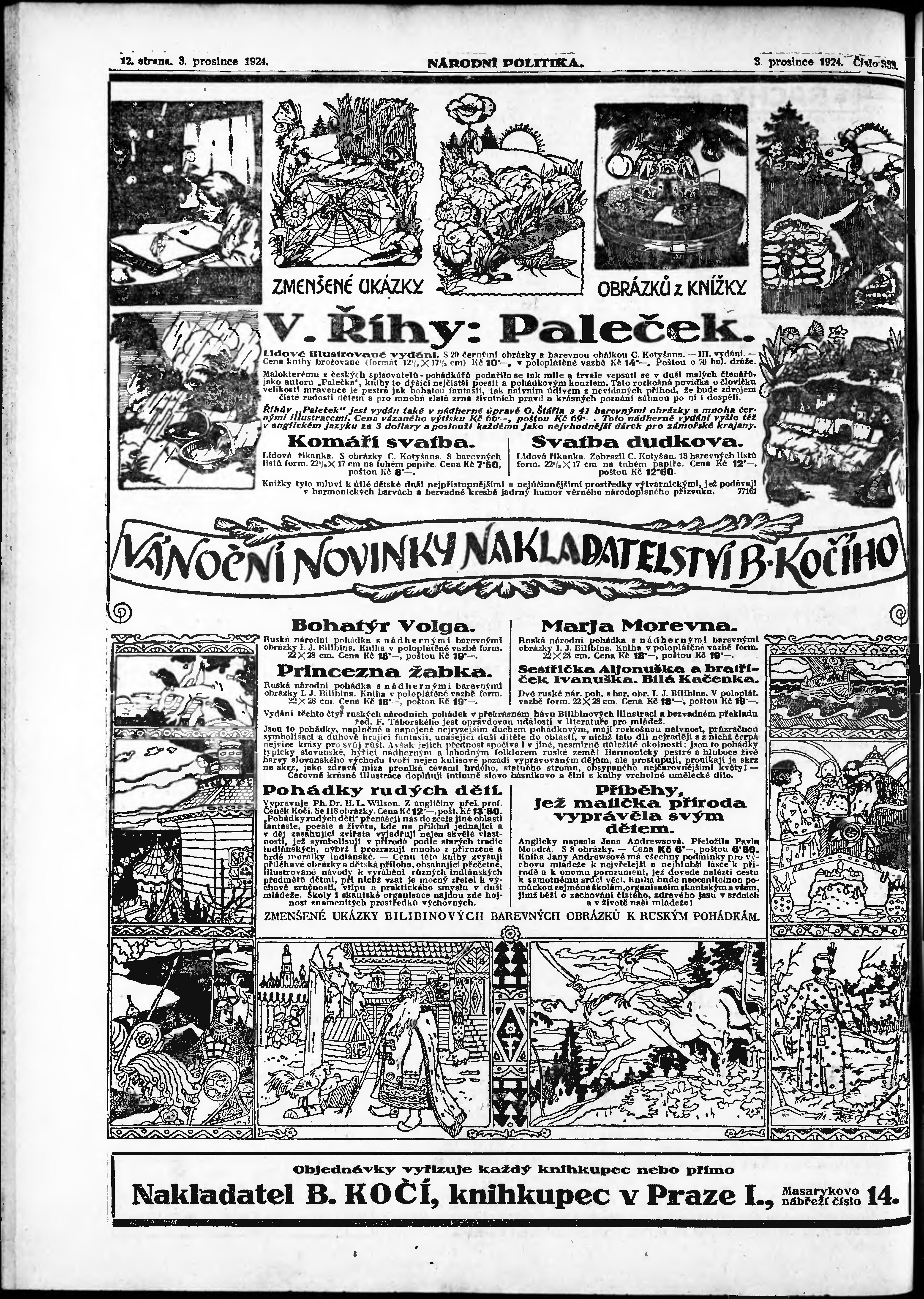 * Datum vydání výtisku: 3.12.1924 Číslo výtisku: 333 Poznámky k výtisku: ranní vydání; vydání pro Prahu;