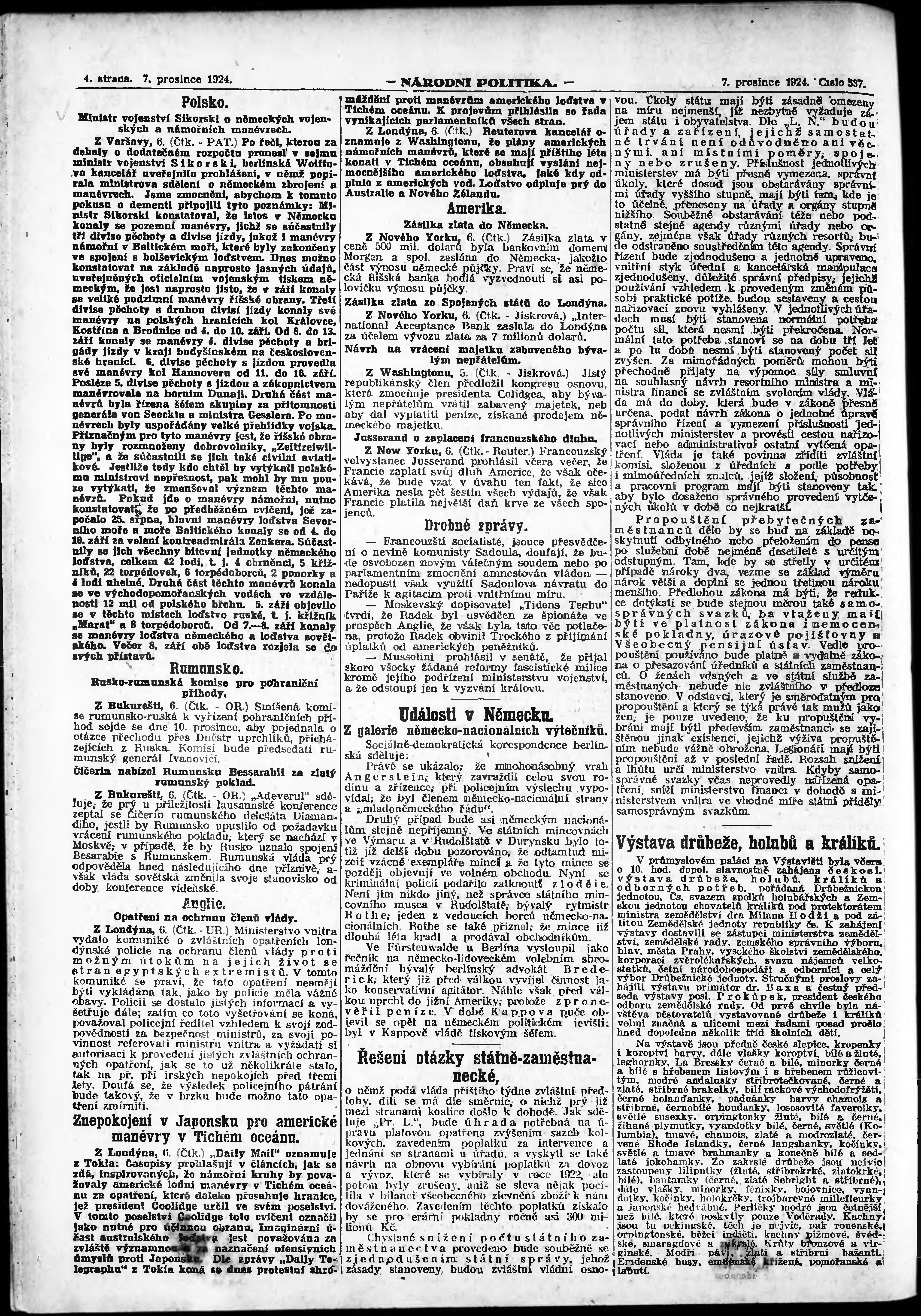 * Datum vydání výtisku: 7.12.1924 Číslo výtisku: 337 Poznámky k výtisku: ranní vydání;