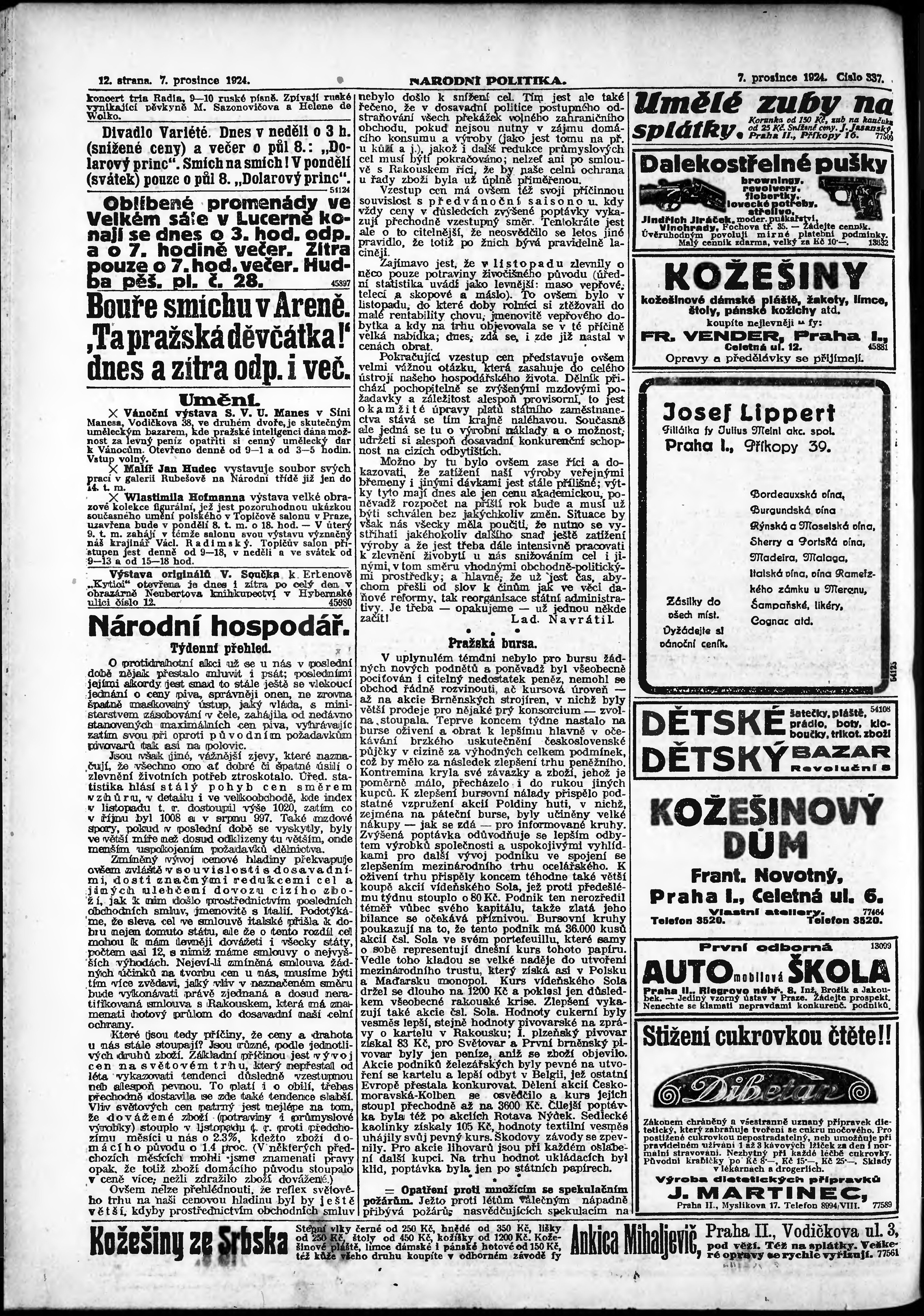 * Datum vydání výtisku: 7.12.1924 Číslo výtisku: 337 Poznámky k výtisku: ranní vydání;