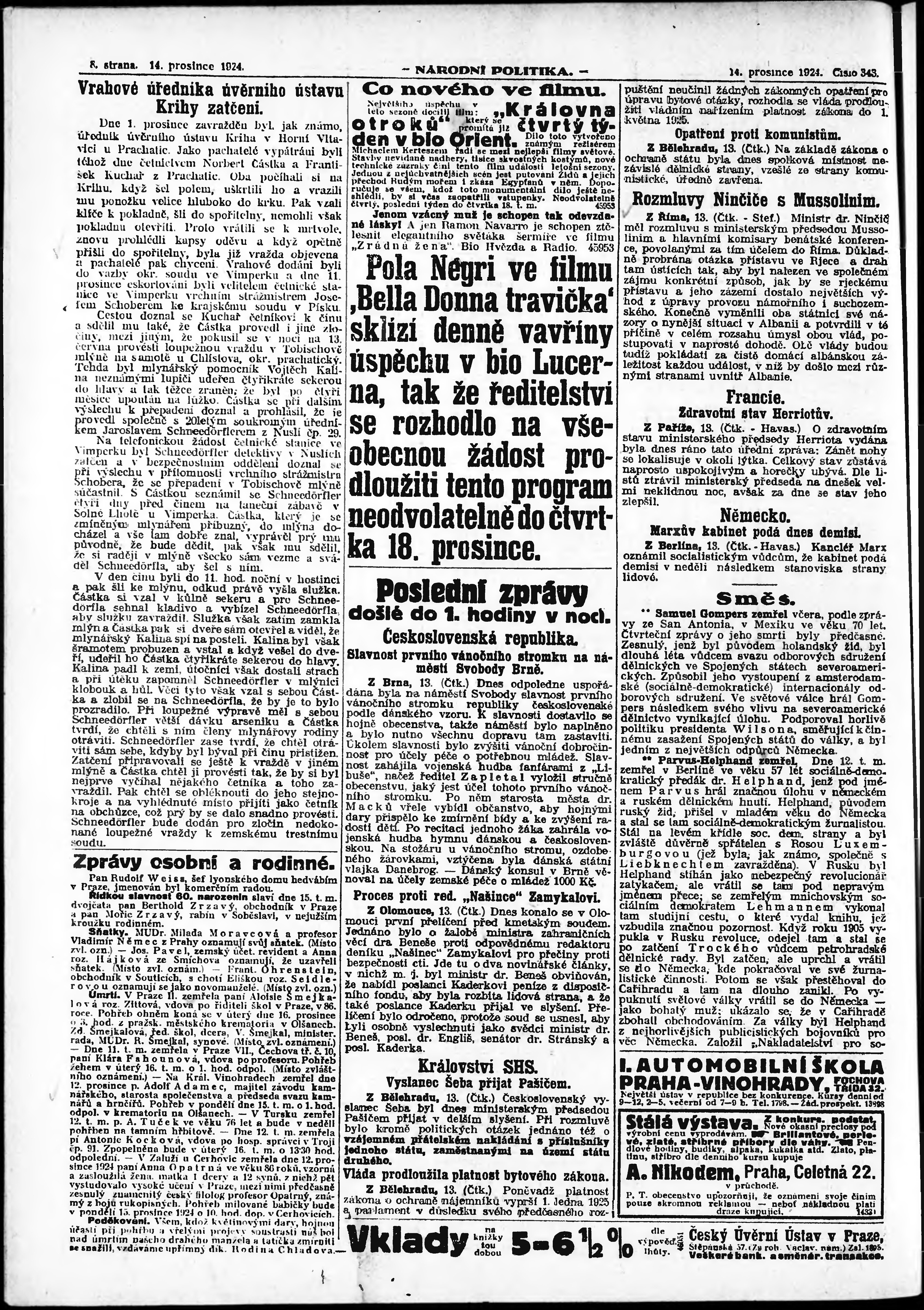 * Datum vydání výtisku: 14.12.1924 Číslo výtisku: 343 Poznámky k výtisku: ranní vydání;