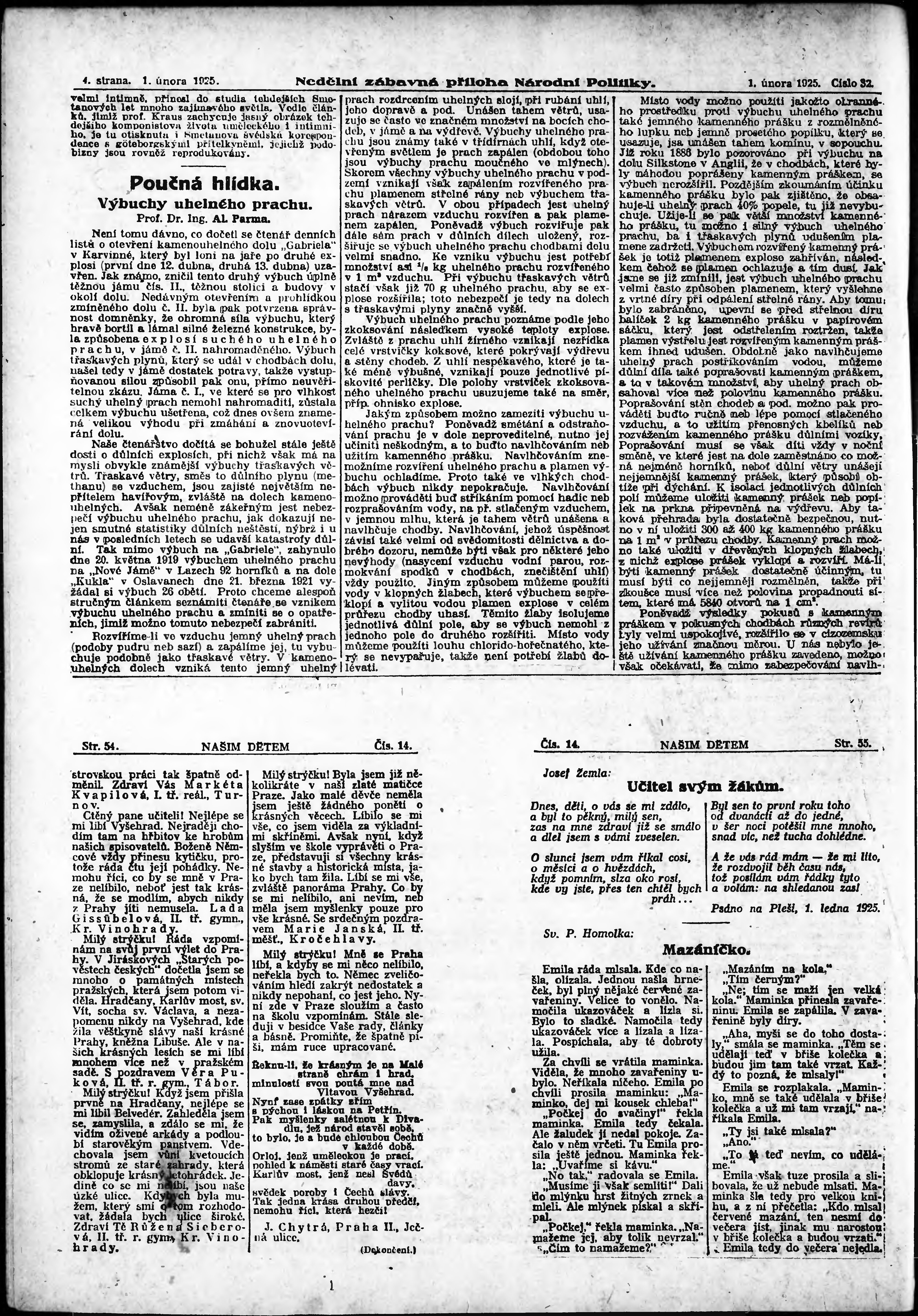* Datum vydání výtisku: 1.2.1925 Číslo výtisku: 32 Typ výtisku: příloha