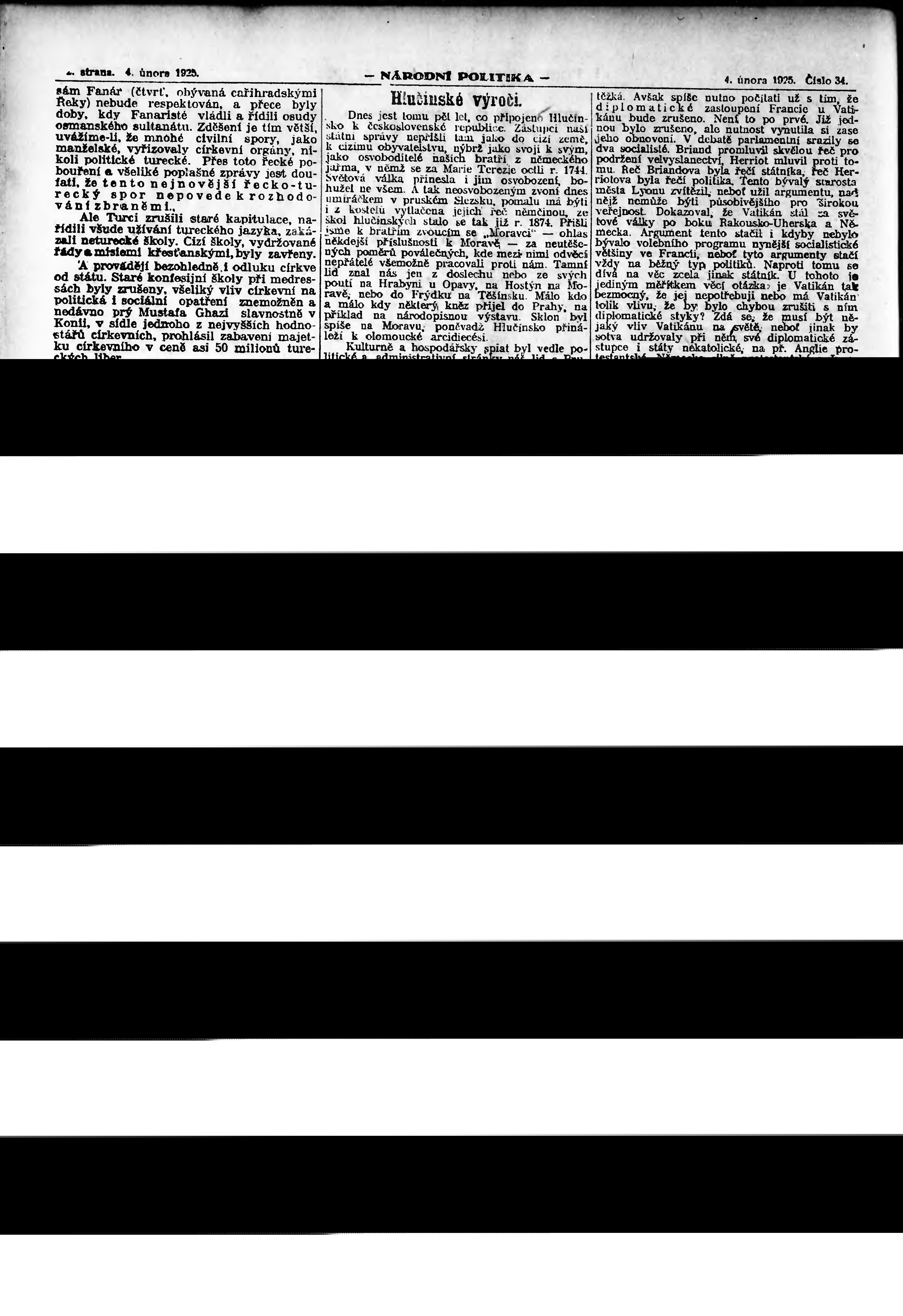 * Datum vydání výtisku: 4.2.1925 Číslo výtisku: 34 Poznámky k výtisku: ranní vydání; vydání pro Prahu;