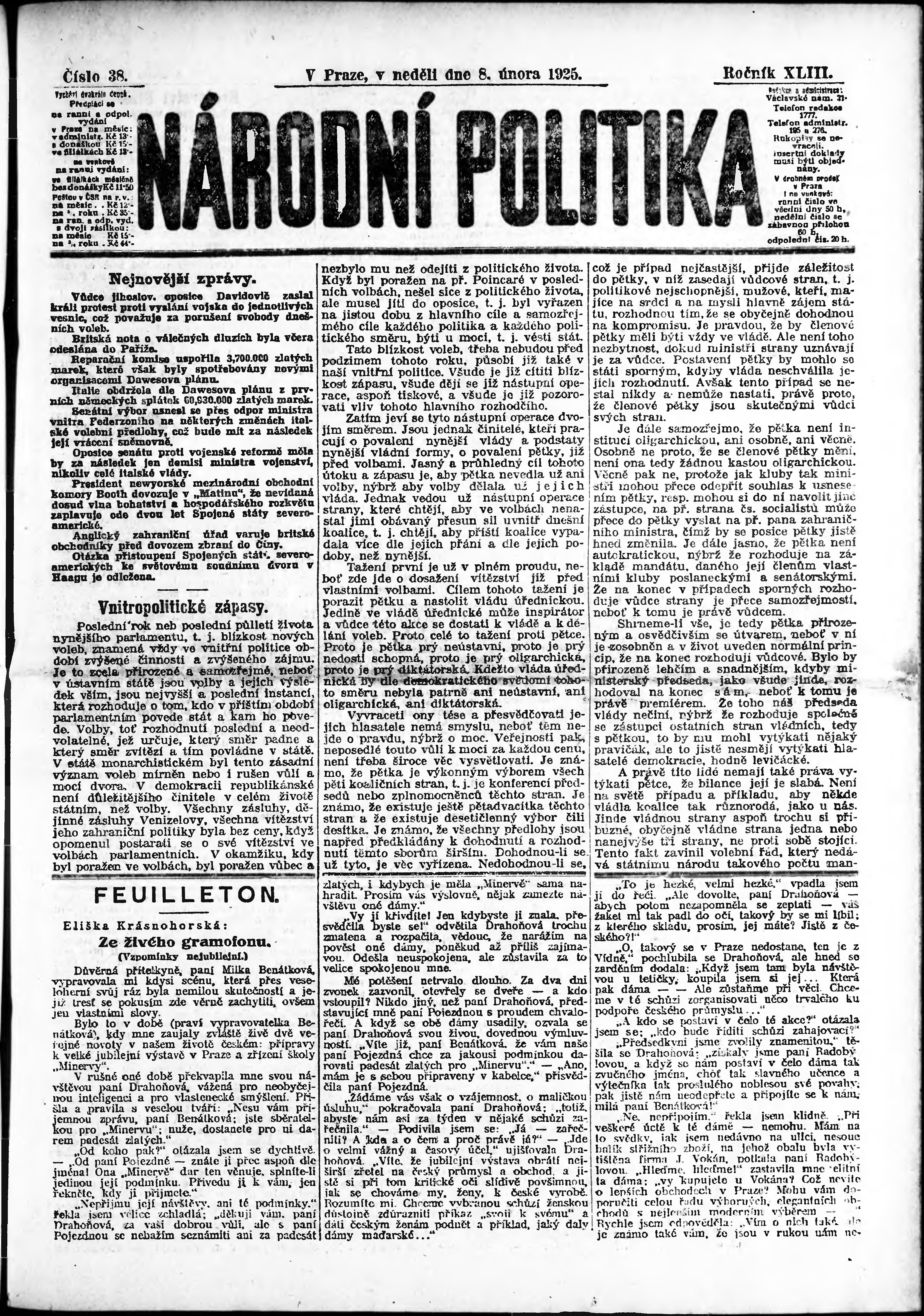 * Datum vydání výtisku: 8.2.1925 Číslo výtisku: 38 Poznámky k výtisku: ranní vydání;