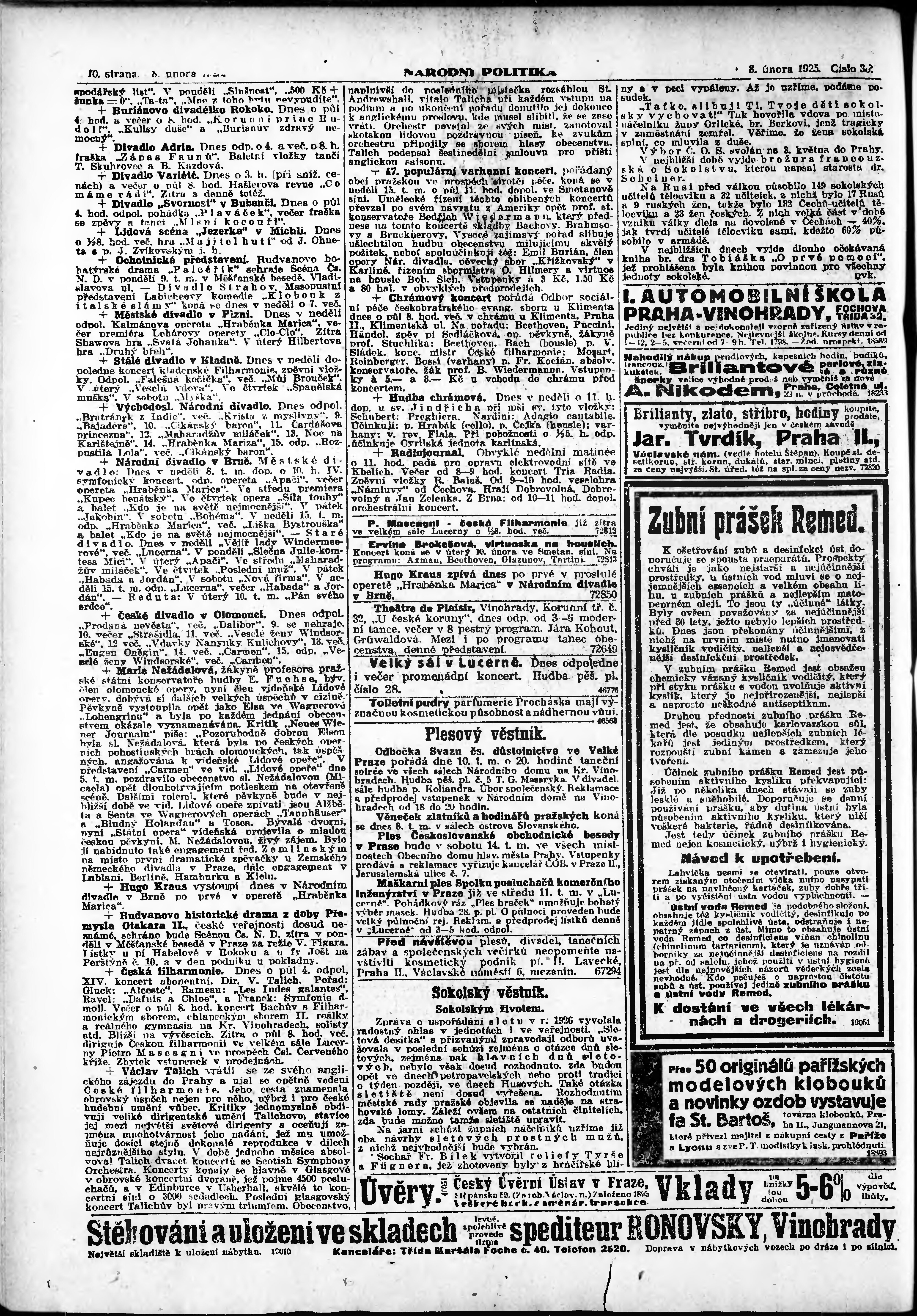 * Datum vydání výtisku: 8.2.1925 Číslo výtisku: 38 Poznámky k výtisku: ranní vydání;